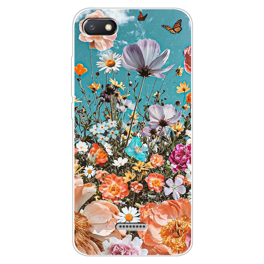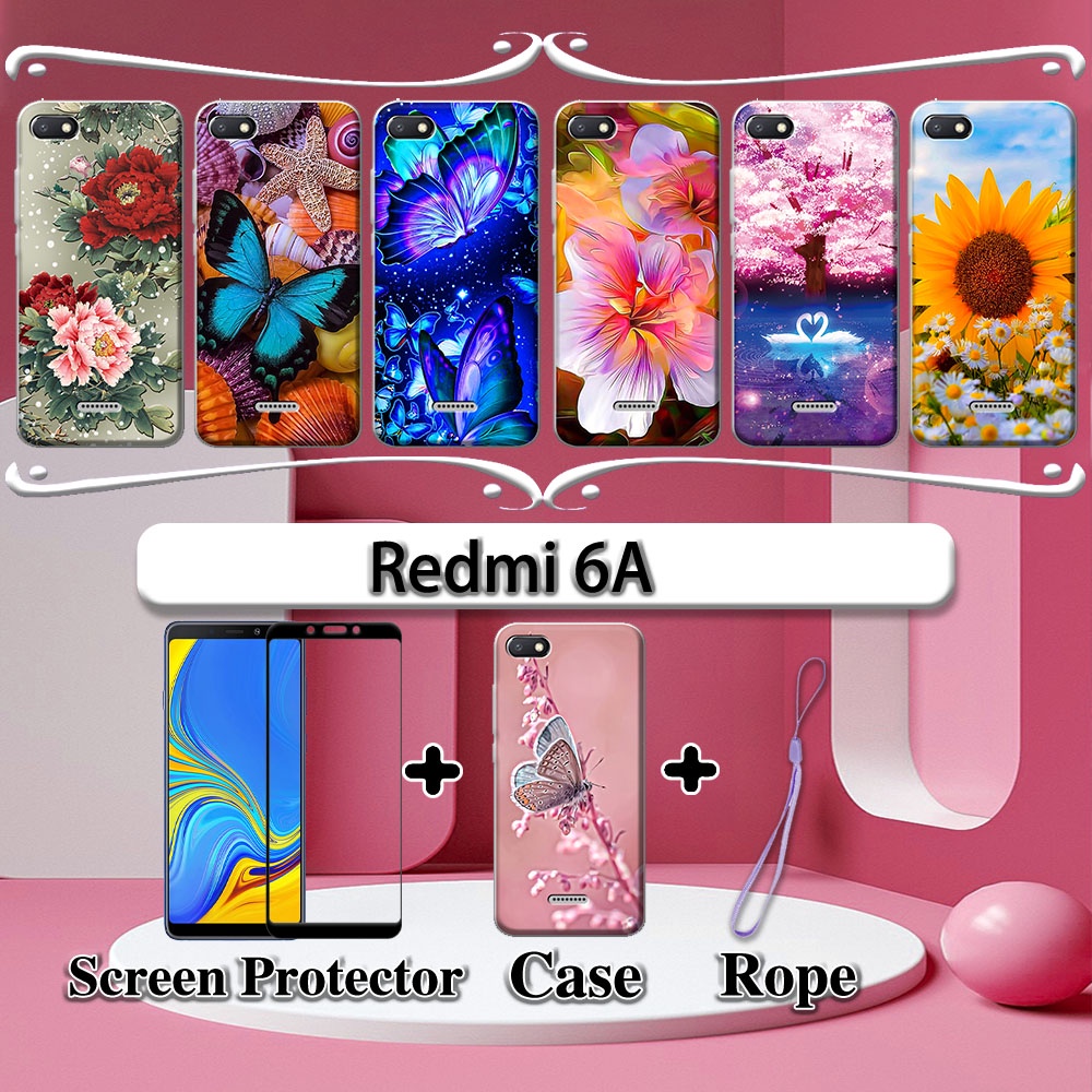 2 IN 1 Xiaomi Redmi 6A Case with Tempered Glass Curved Ceramic Screen Protector Flowers