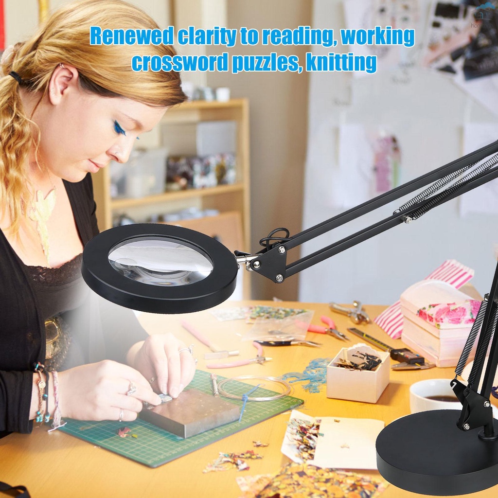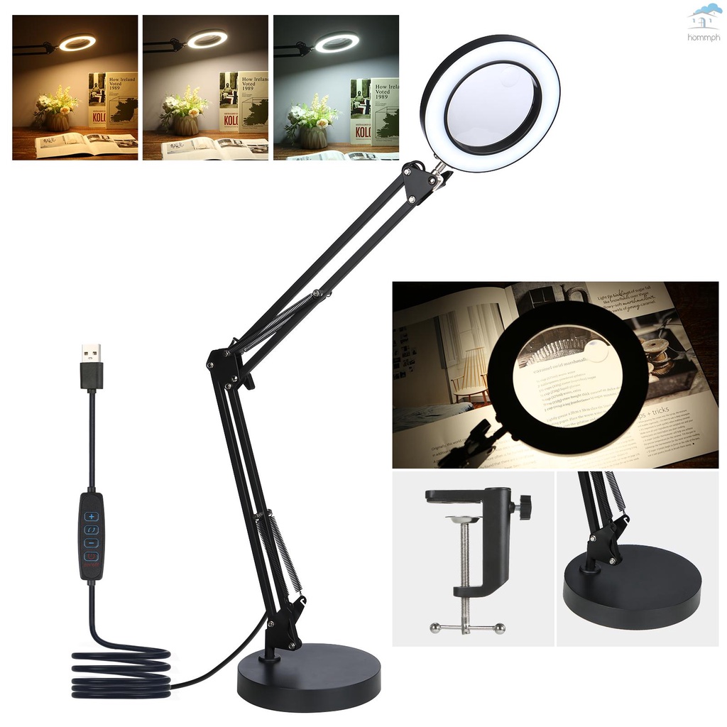 2 In 1 72LEDs 10W 5X/10X Magnifying Glass Desk Lamp LEDs Lighted Magnifier with Metal Clamp USB Powered/ 3 Colors Temperature Changing/ 10 Levels Dimmable Brightness Adjustable/ Po