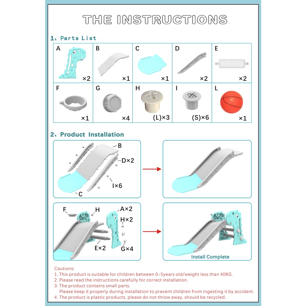 2 In1 Foldable Baby Indoor Multi-functional Slide with Basketball Hoo