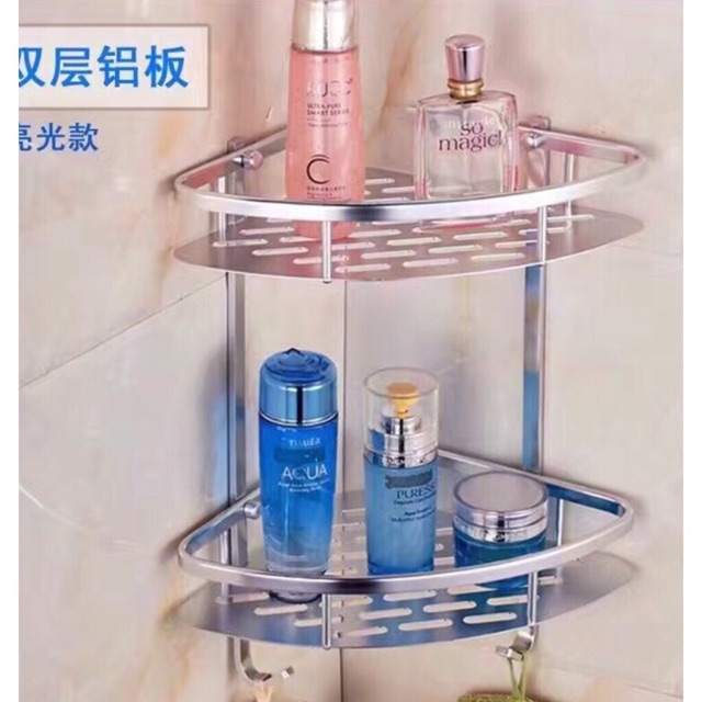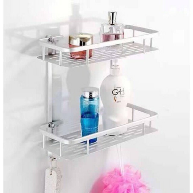 2 Layer Aluminum Wall Mounted BathRoom Organizer With Hook