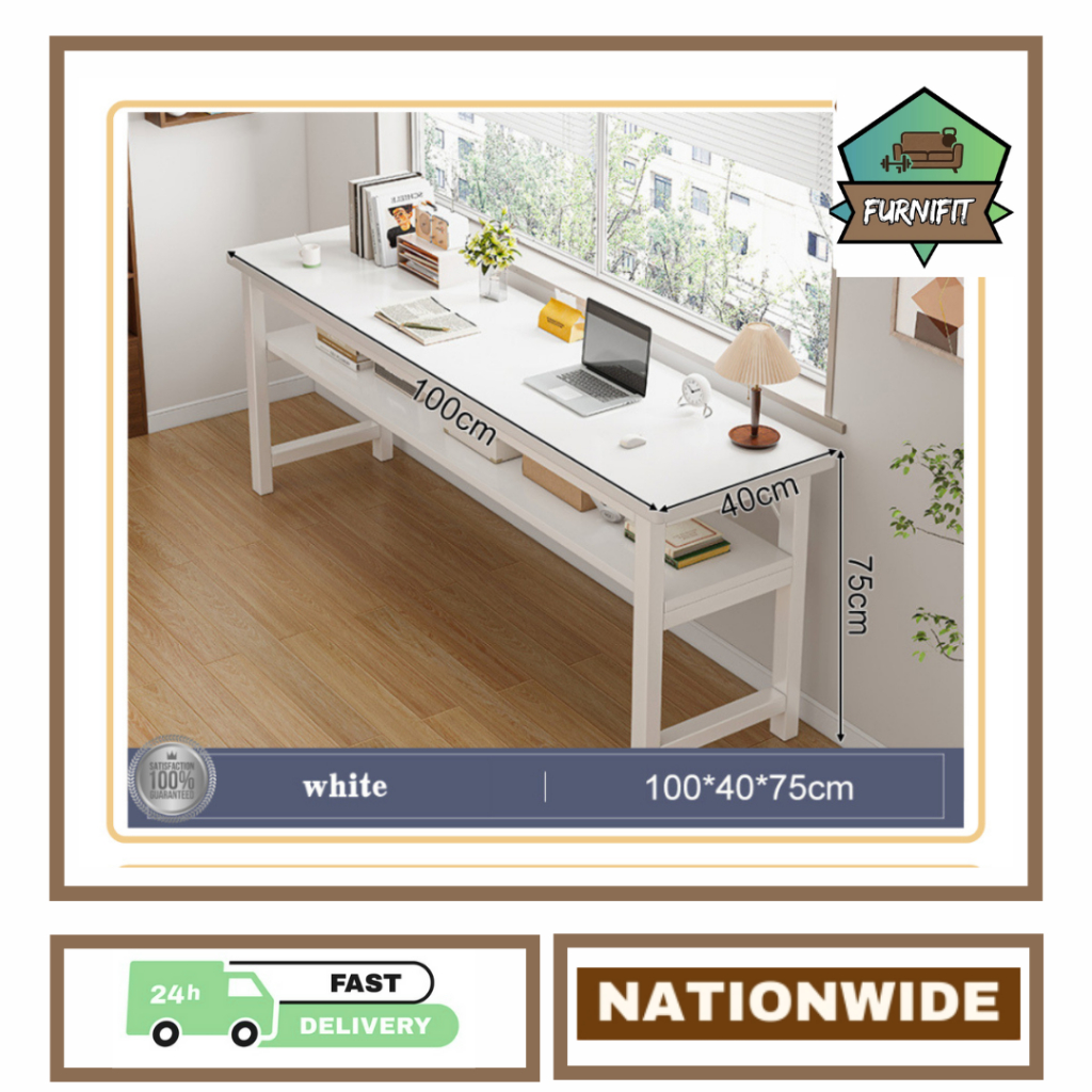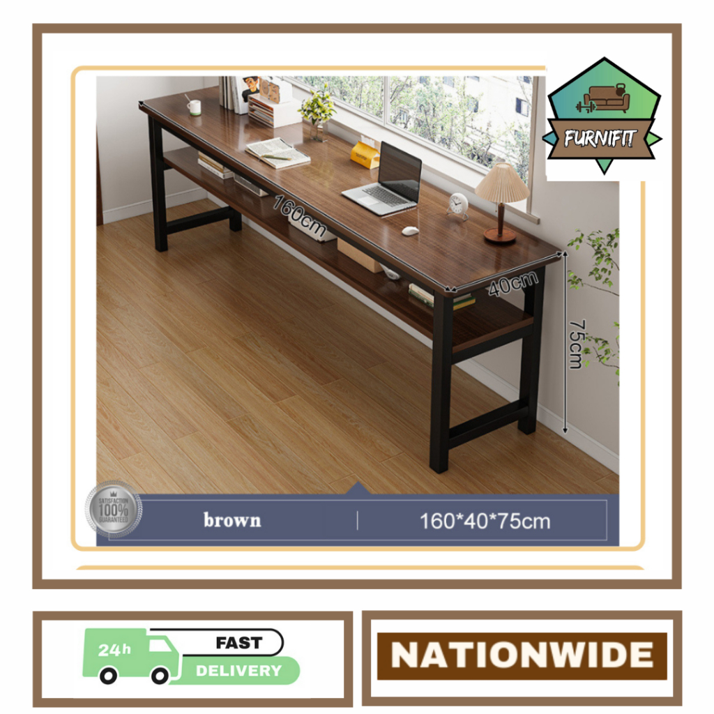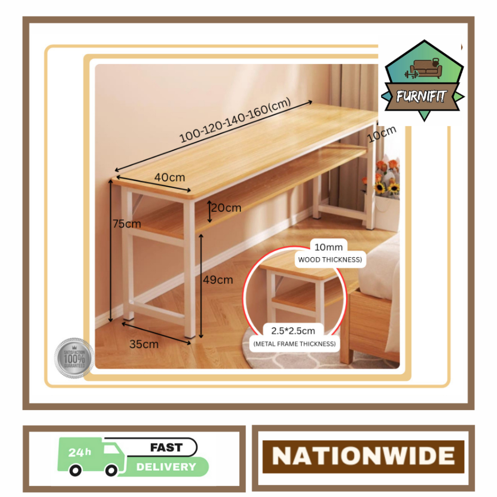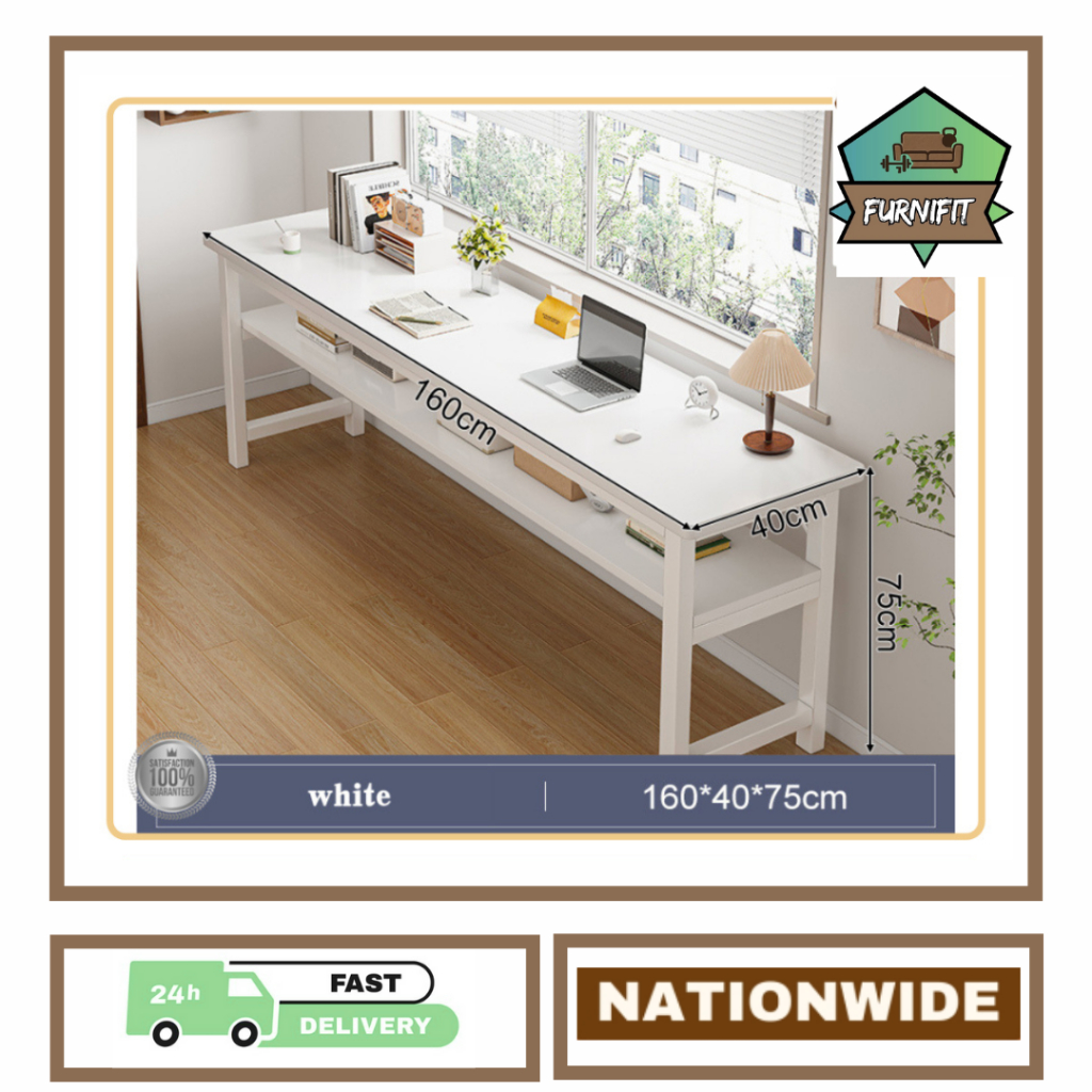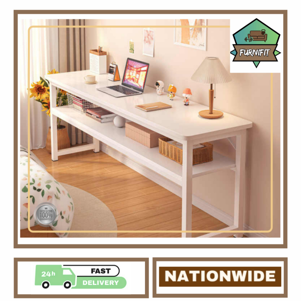 2 Layer Long Office Table Computer Desk Study Table Home Office 100-160cm Table with Storage Shelf