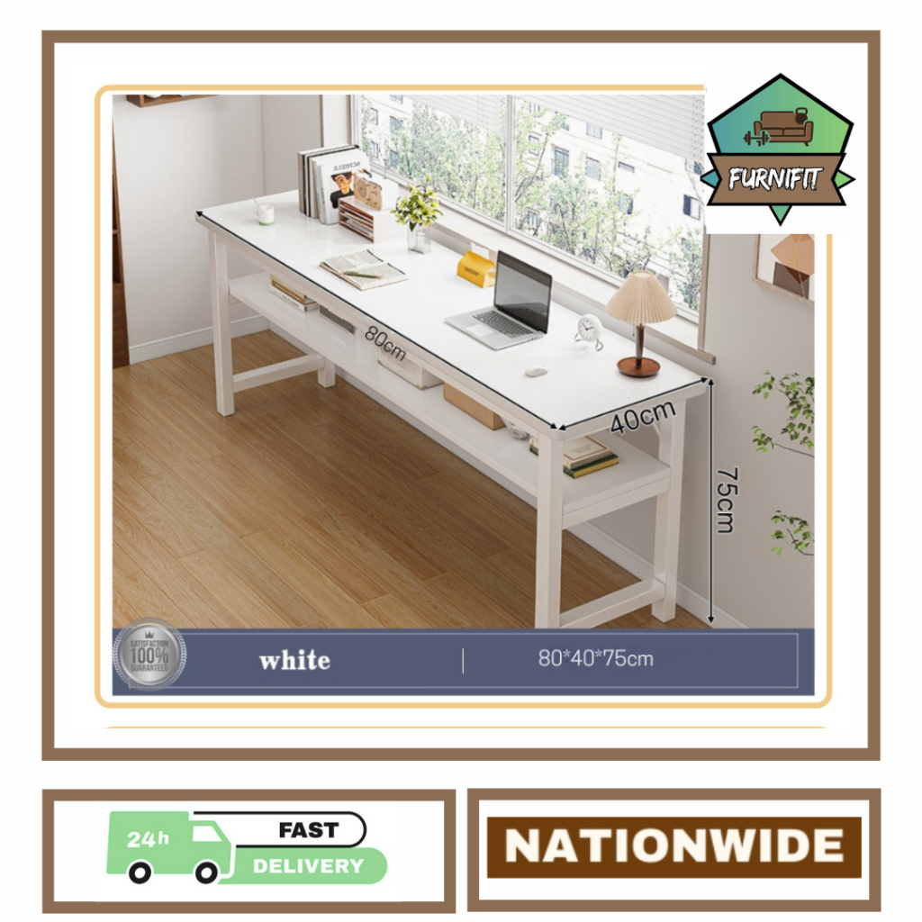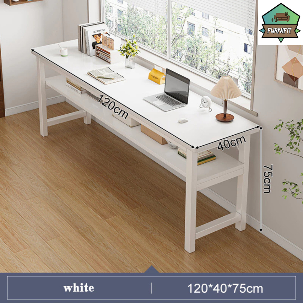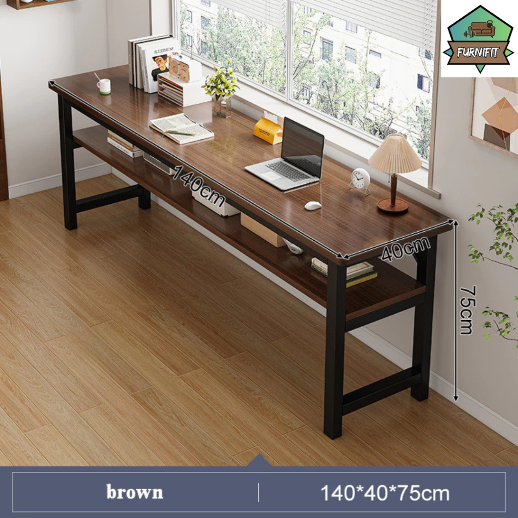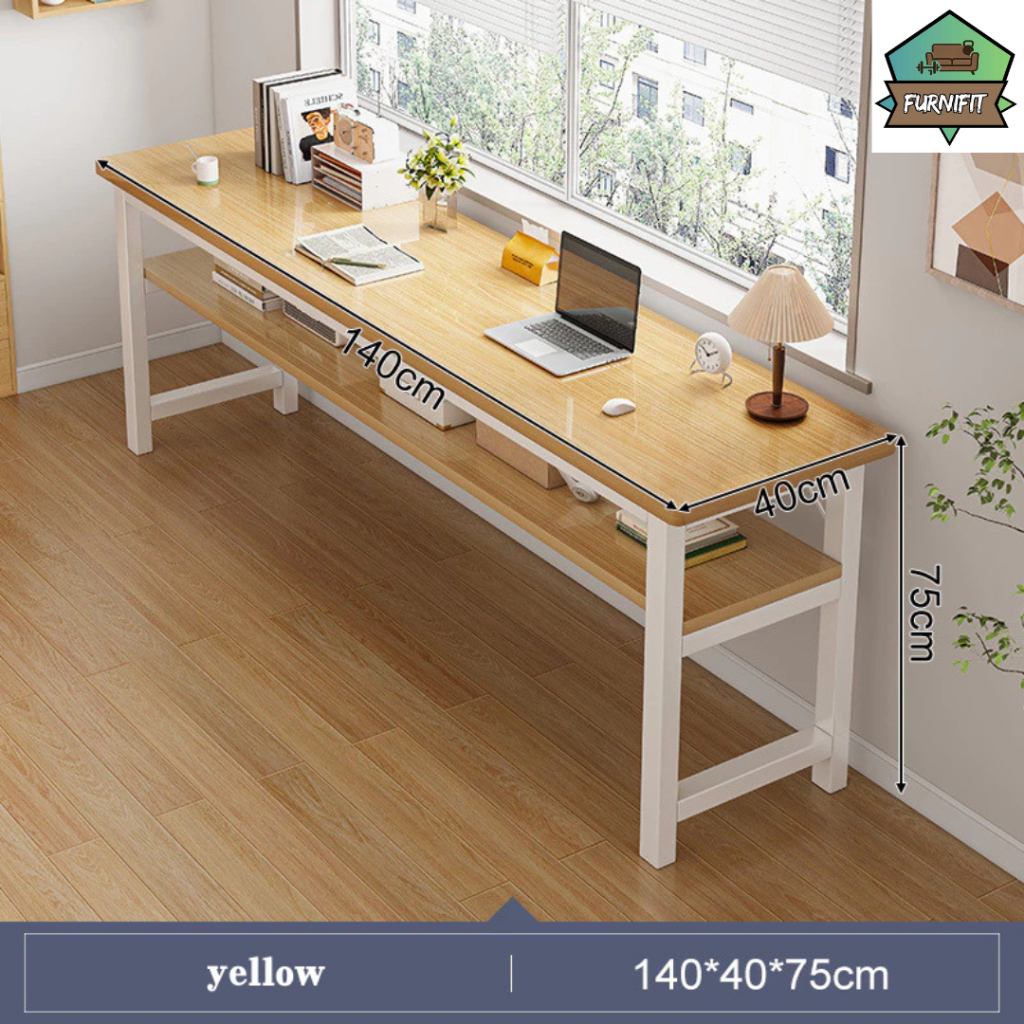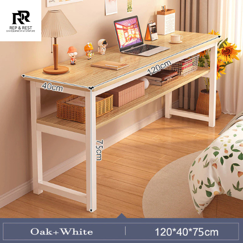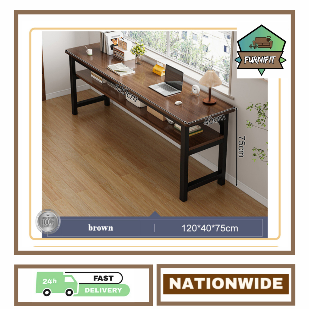 2 Layer Long Office Table Computer Desk Study Table Home Office 100-160cm Table with Storage Shelf