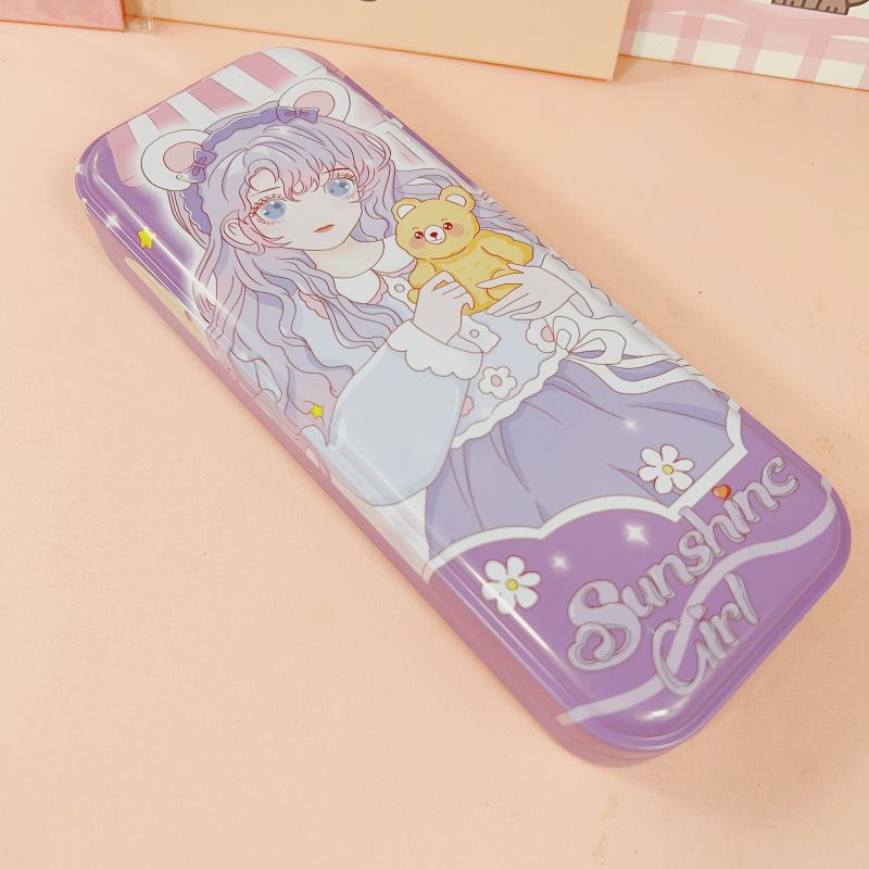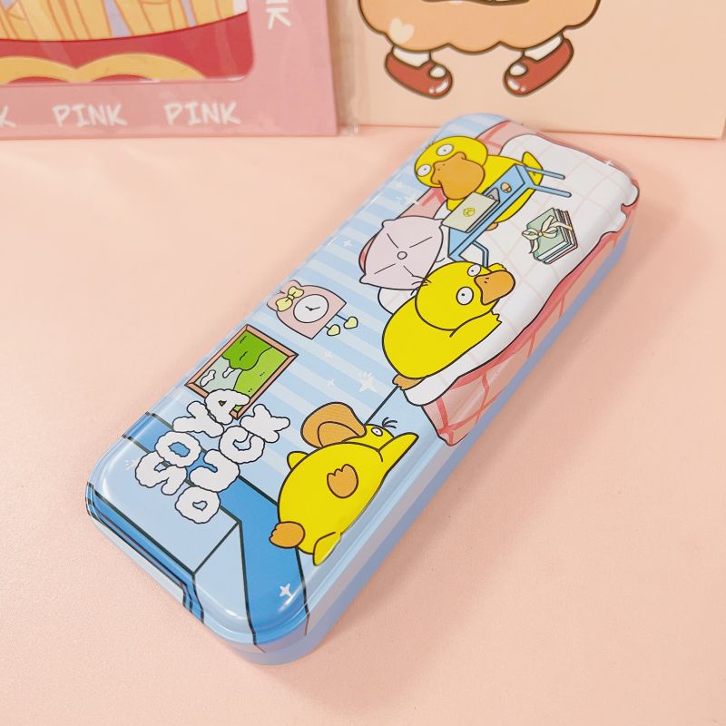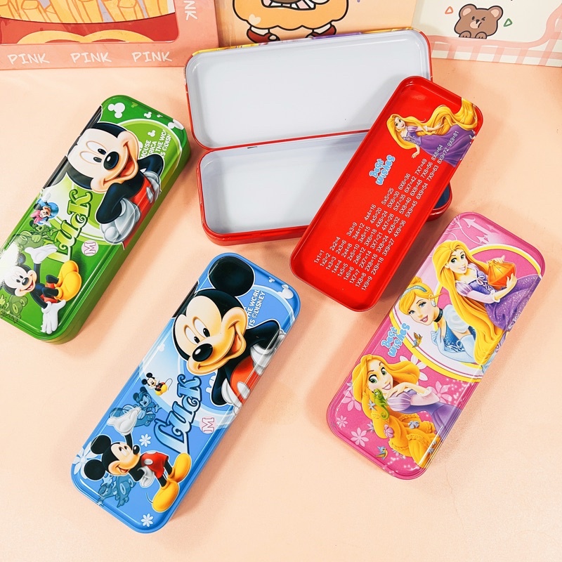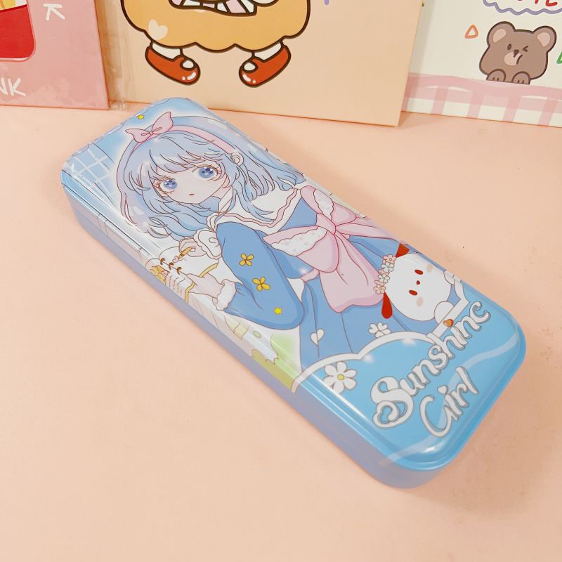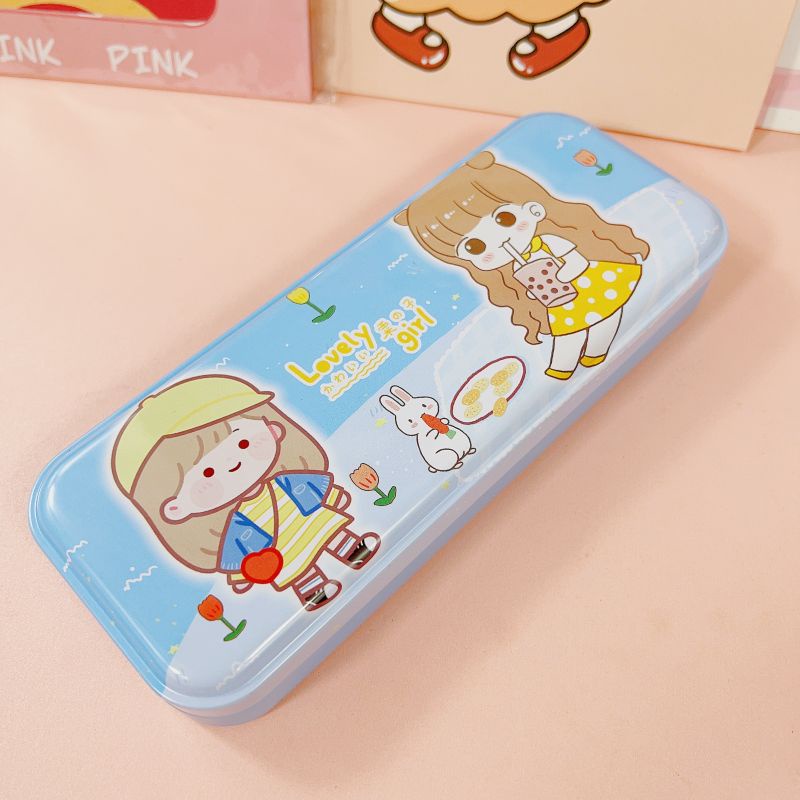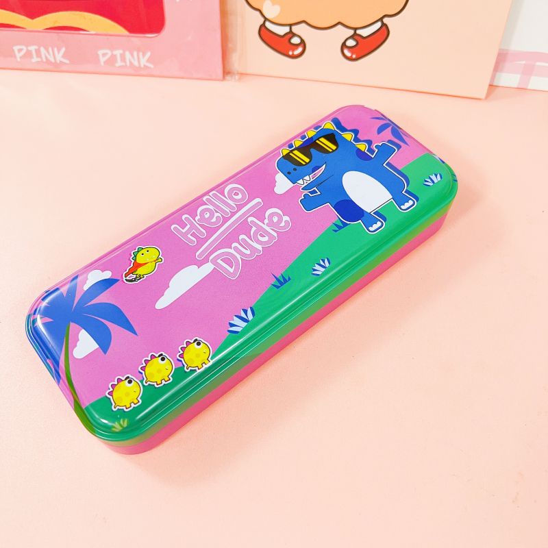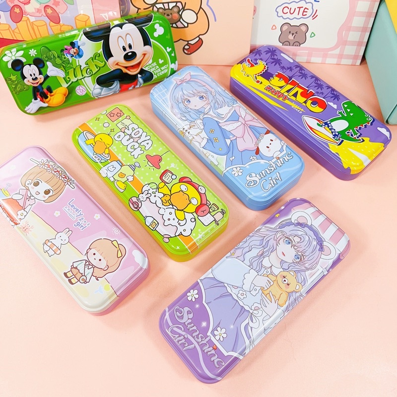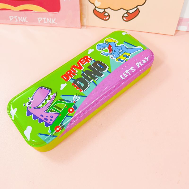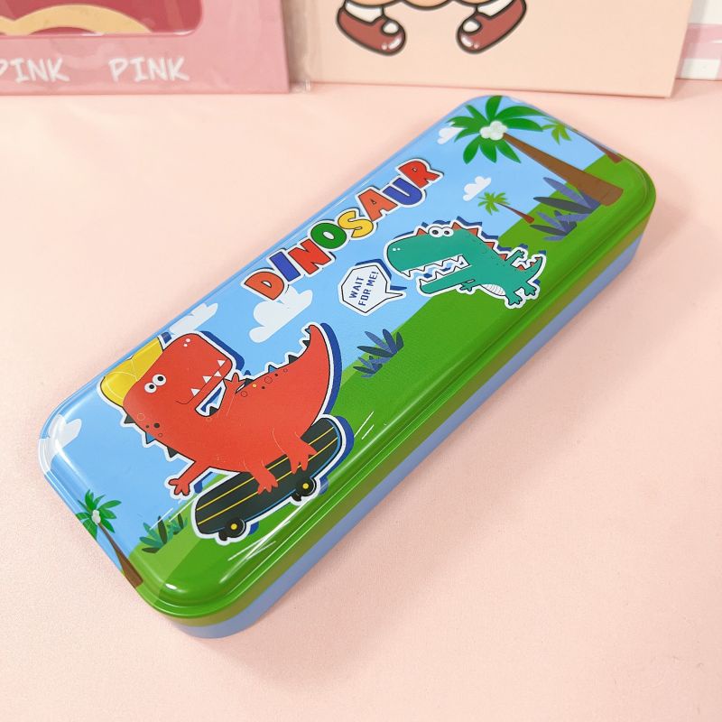 2 Layer Metal Pencil Case Character Design Tin Box School Supply Kiddie Travel Multipurpose Box