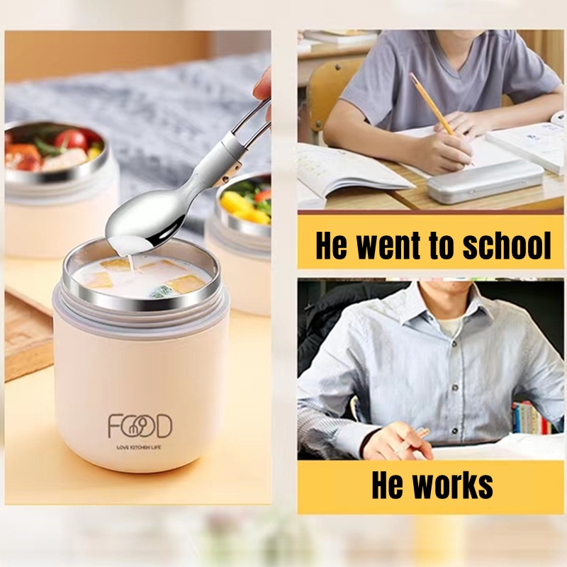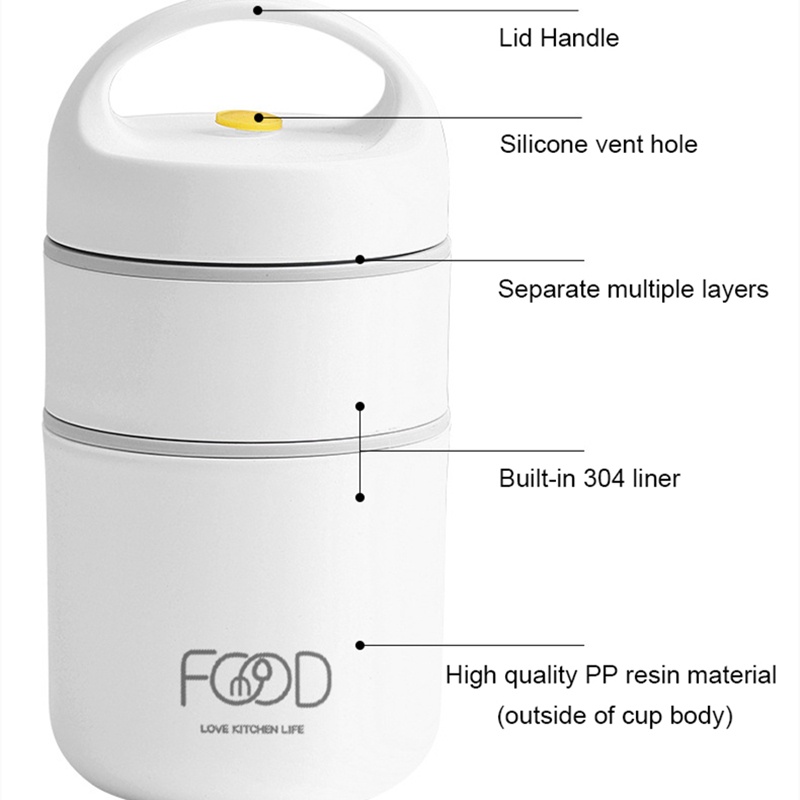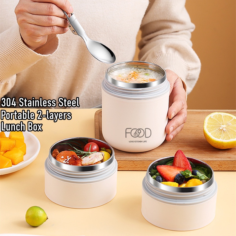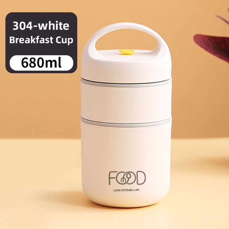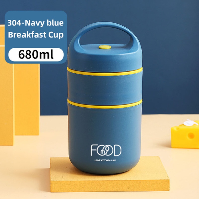 2 Layers Portable Lunch Box Insulated Food Container Breakfast Cup Porridge Cup