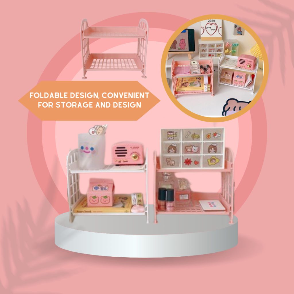 2 Layers Simple Folding Desktop Storage Rack Shelf Table Organizer