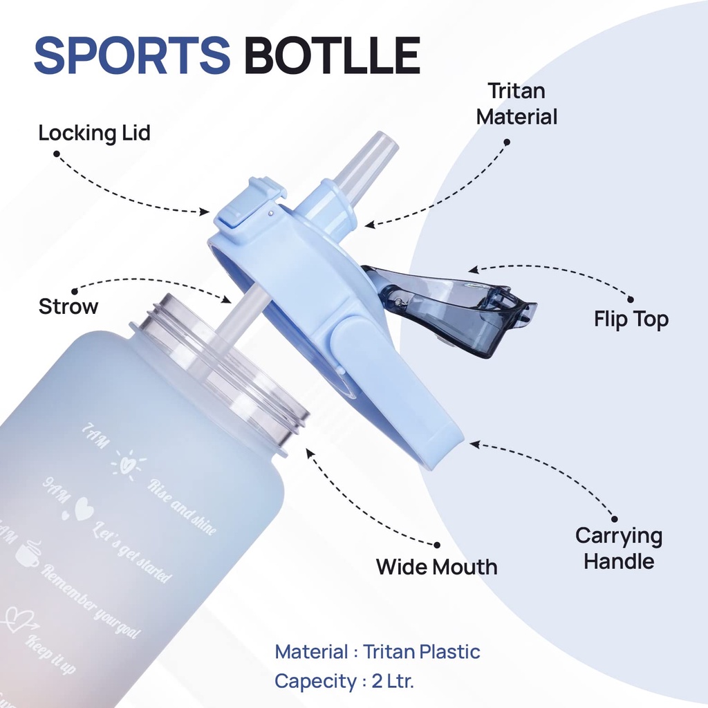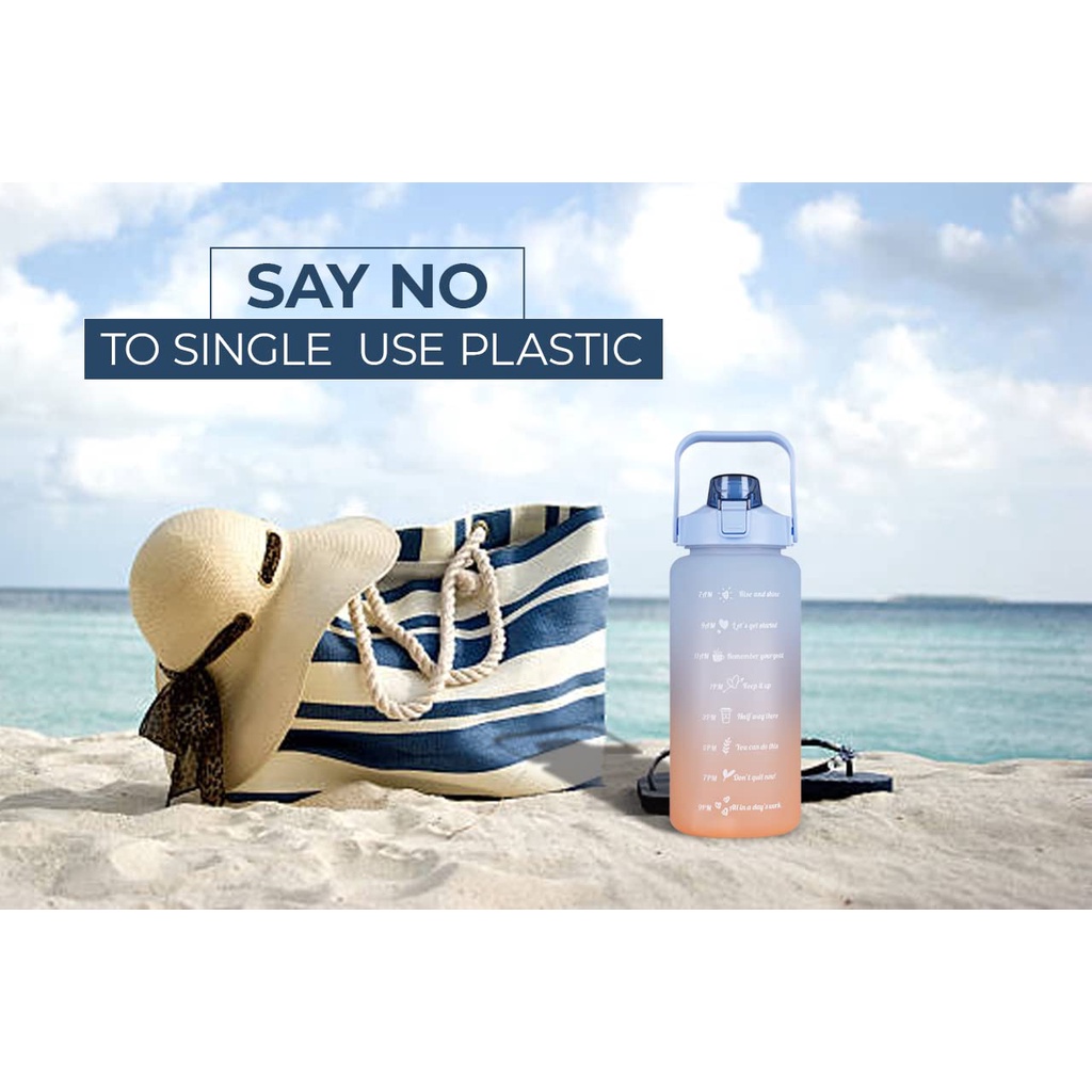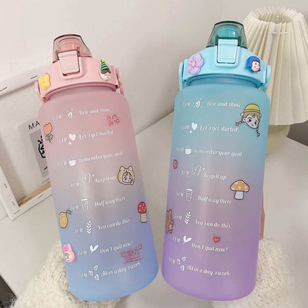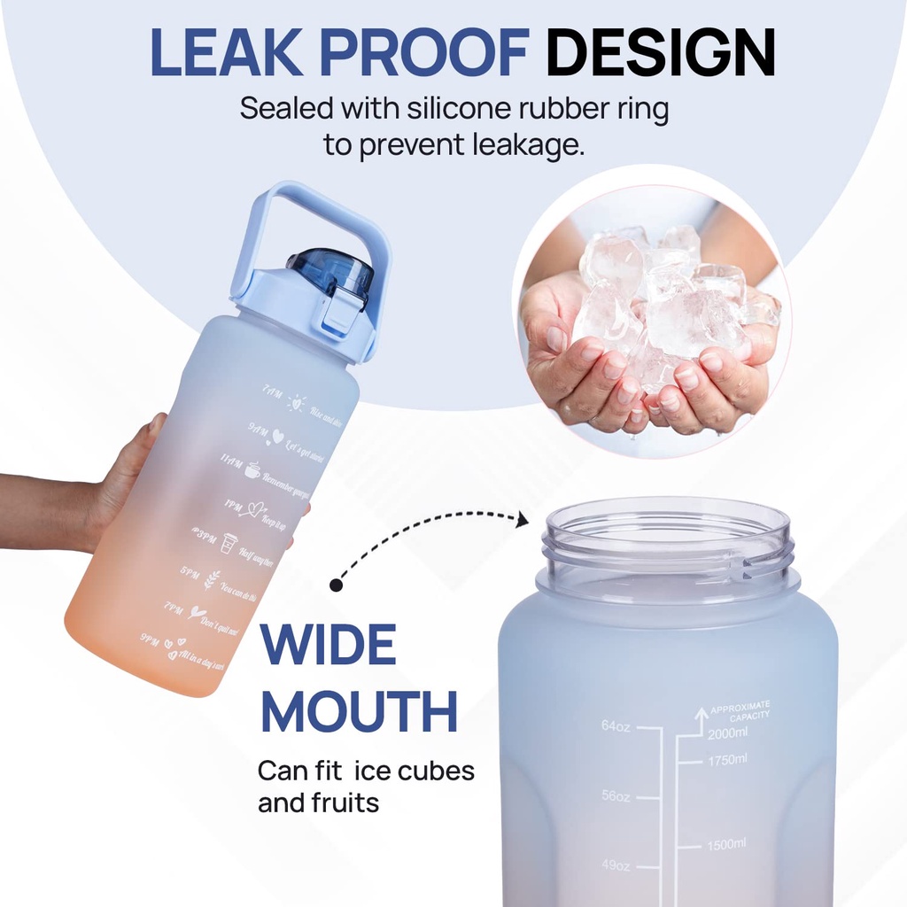 2 Liters Water Bottles 2L Jumbo Pastel Sports Tumbler With Time Marker & Straw-BPA Free Sticker