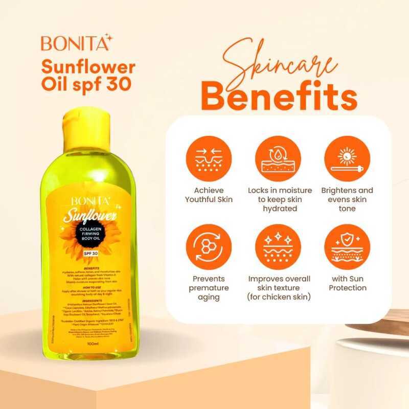 66 E9 BONITA SUNFLOWER OIL SPF 30 COLLAGEN FIRMING 100Ml Organic, Hydrating, Bod