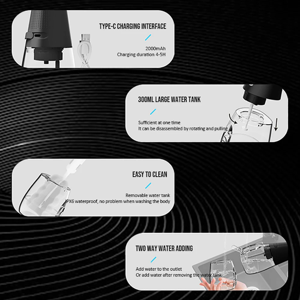 Portable 300ML Oral Irrigator Water Flosser Tartar Remover 5 Nozzels 3 Modes Waterproof USB Rechargeable Teeth Cleaning Tool