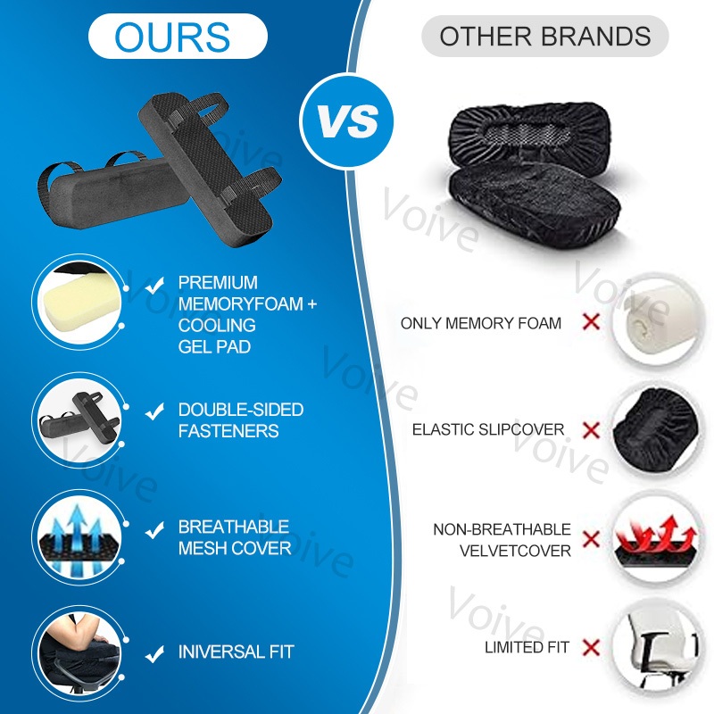 2 PCS Armrest Pad Chair Armrest Cushion Memory Foam Armrest Cover Mat Relief Elbow Rest Pillow
