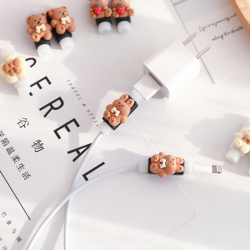 2 PCS Cartoon Rabbit Bear Strawberry Flower Cable Protector for IPhone Cord Wire Cable Winder Cable Accessory Universal