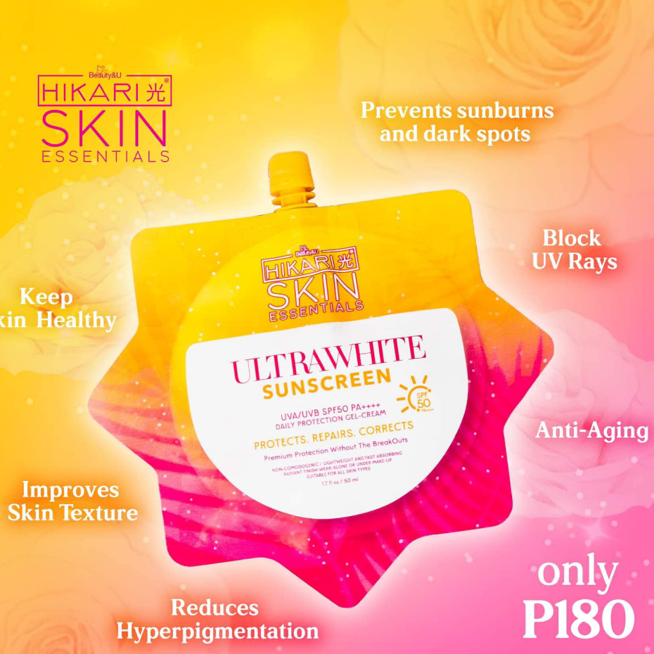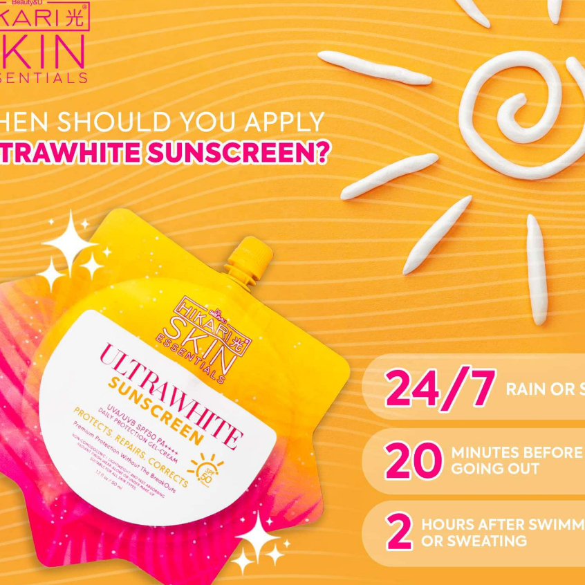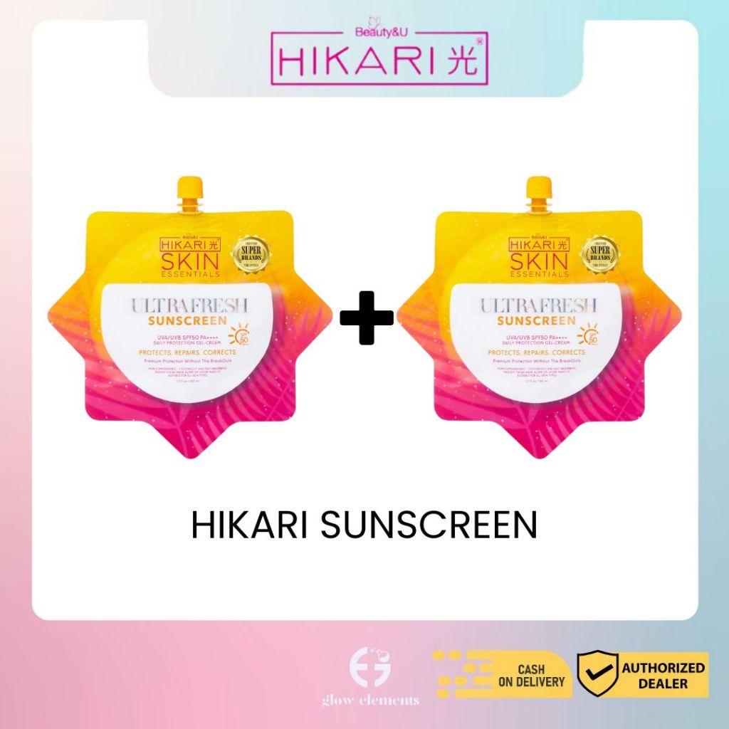 2 PCS HIKARI ULTRAFRESH ULTRAWHITE SUNSCREEN SPF 50 PA++++ 50ML WHITENING GLASS SKIN GLOWING SKIN
