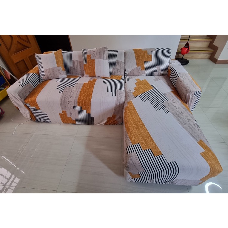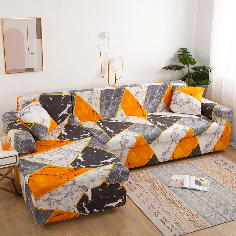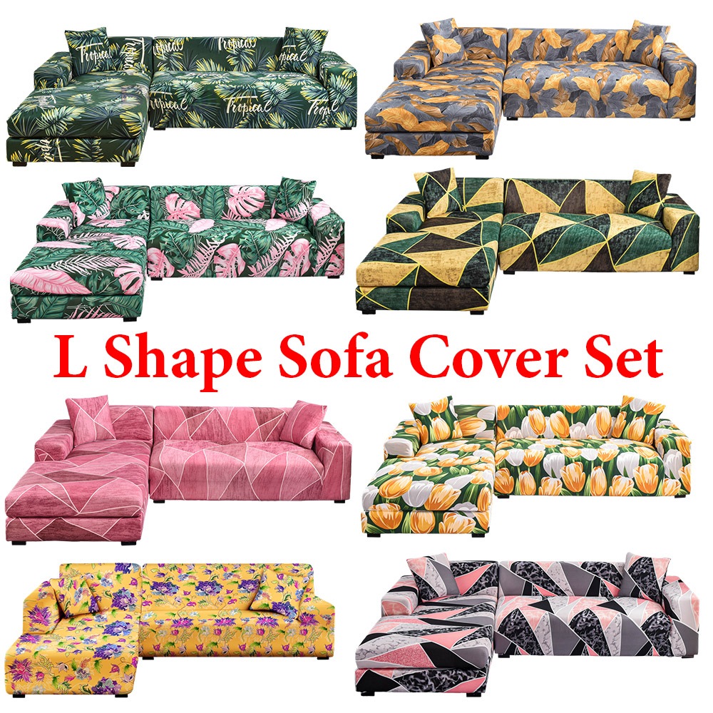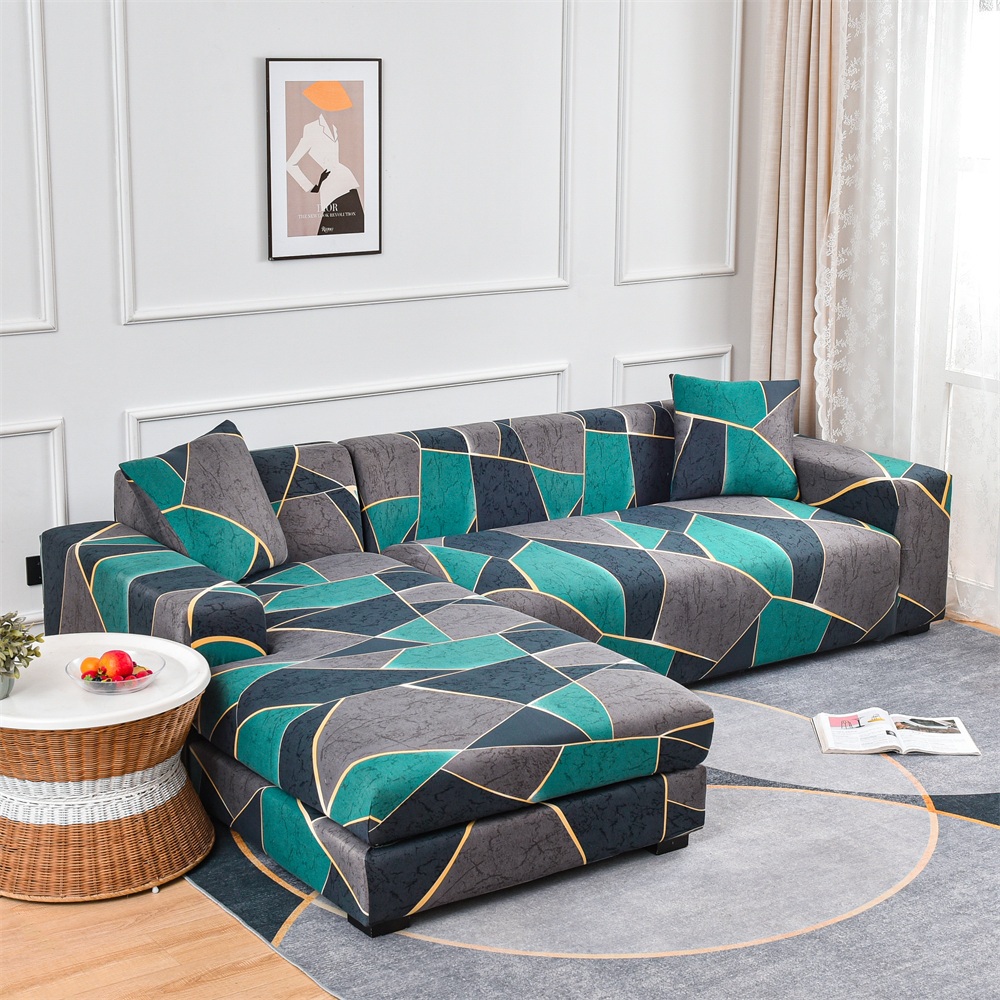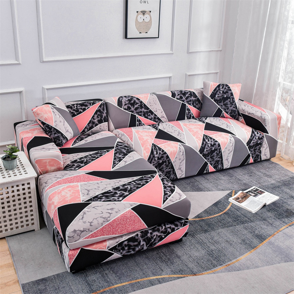 2 PCS Sofa Cover Set for L Shape Geometric Printed Sofa Cover Sets Stretchable L Type Sofa Slipcover