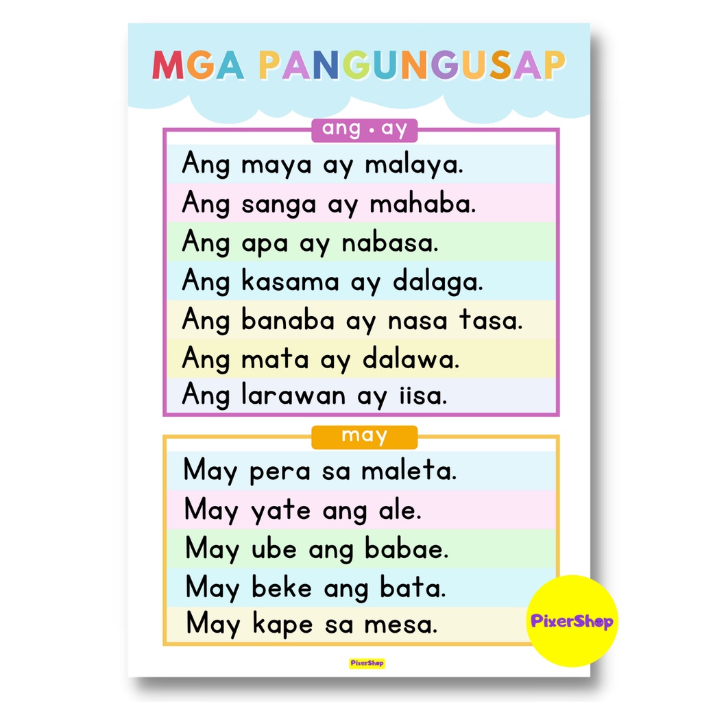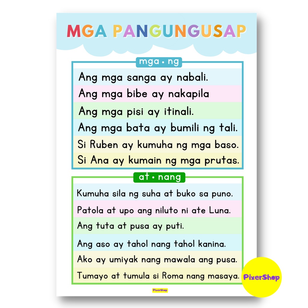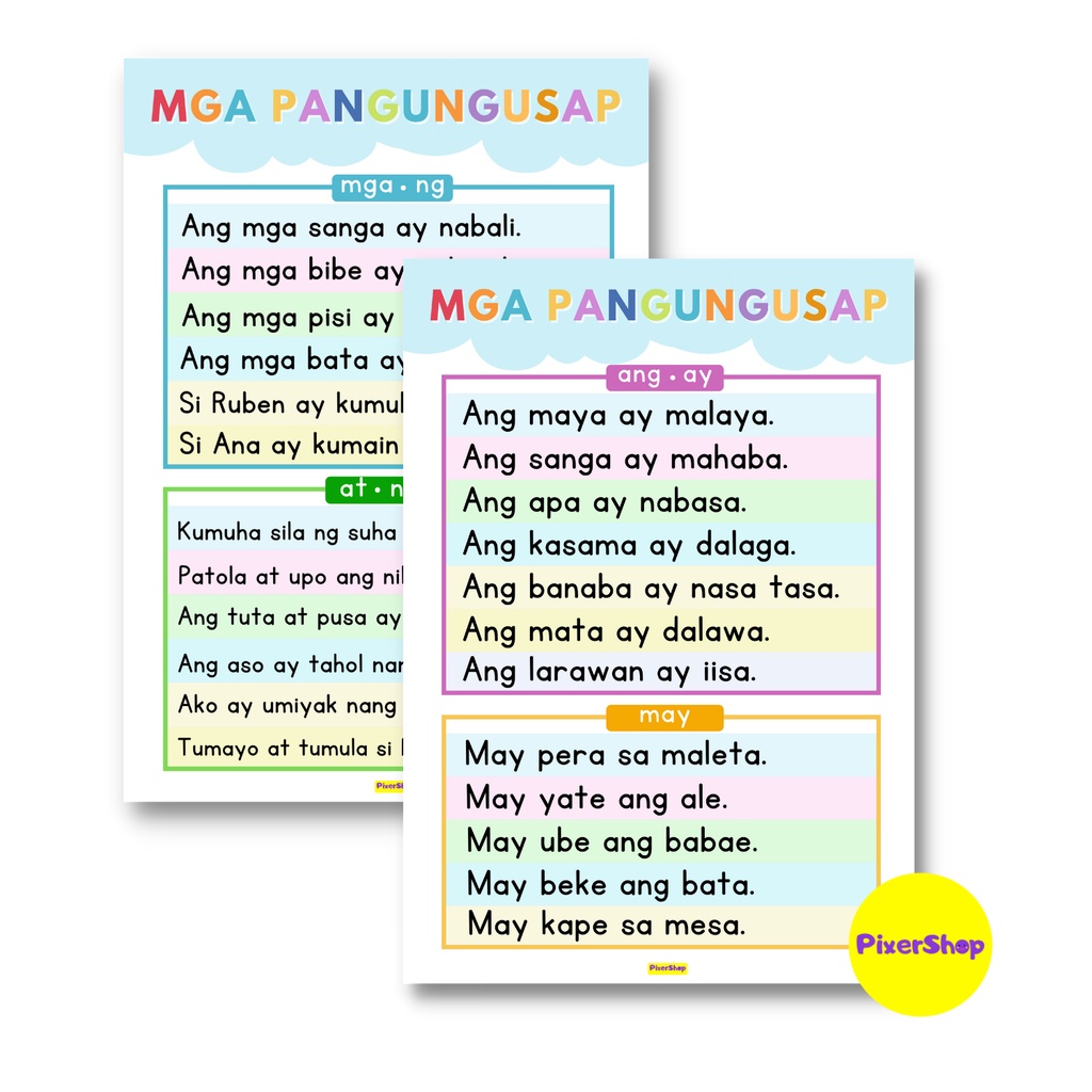 2 PCS. MGA PANGUNGUSAP EDUCATIONAL POSTERS/A4 SIZE TAGALOG READING