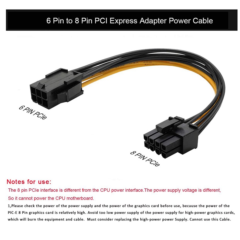 2 Pack Graphics Card 6 Pin to 8 Pin PCIe Adapter Power Cable 7.8 Inch