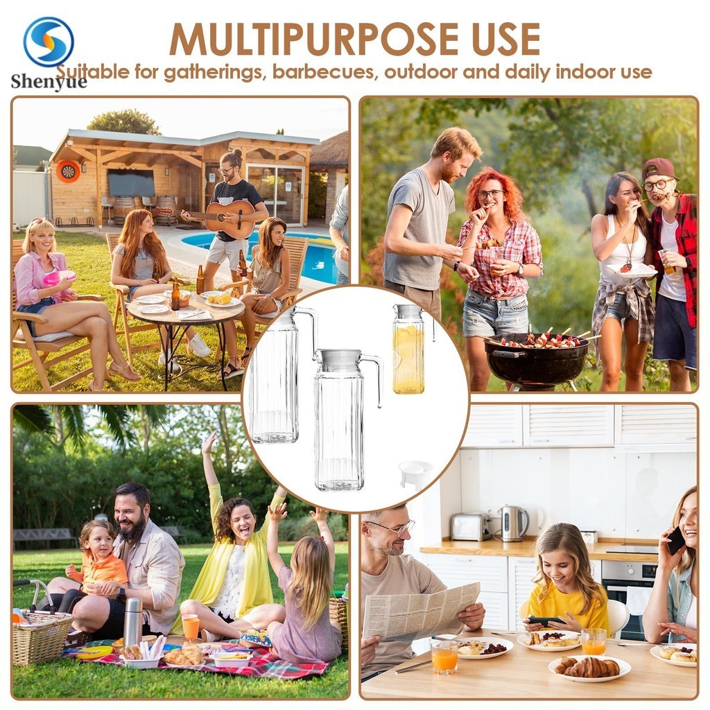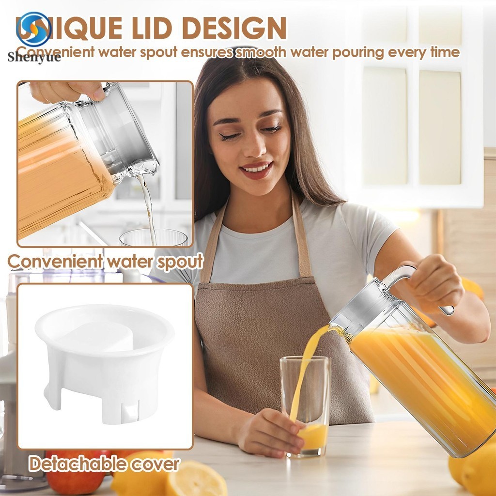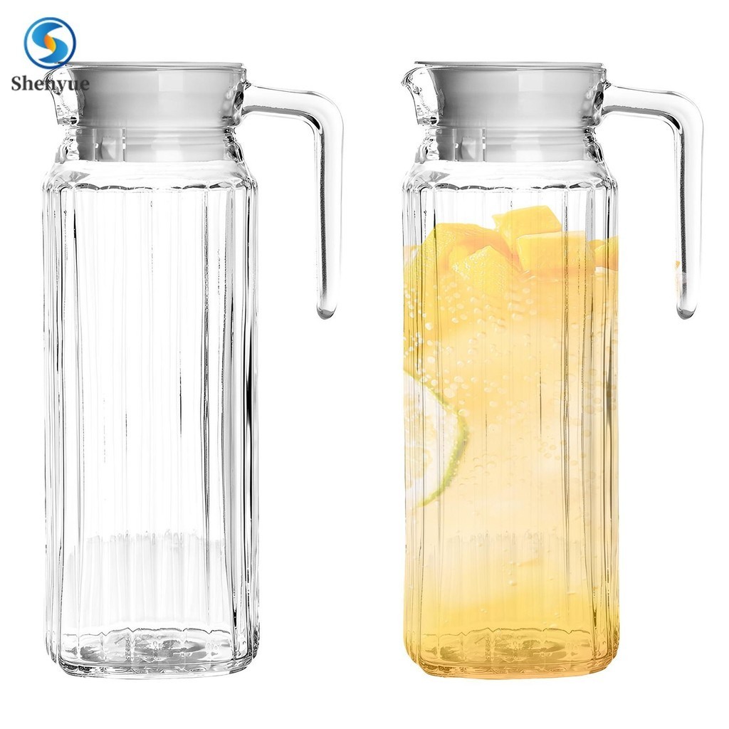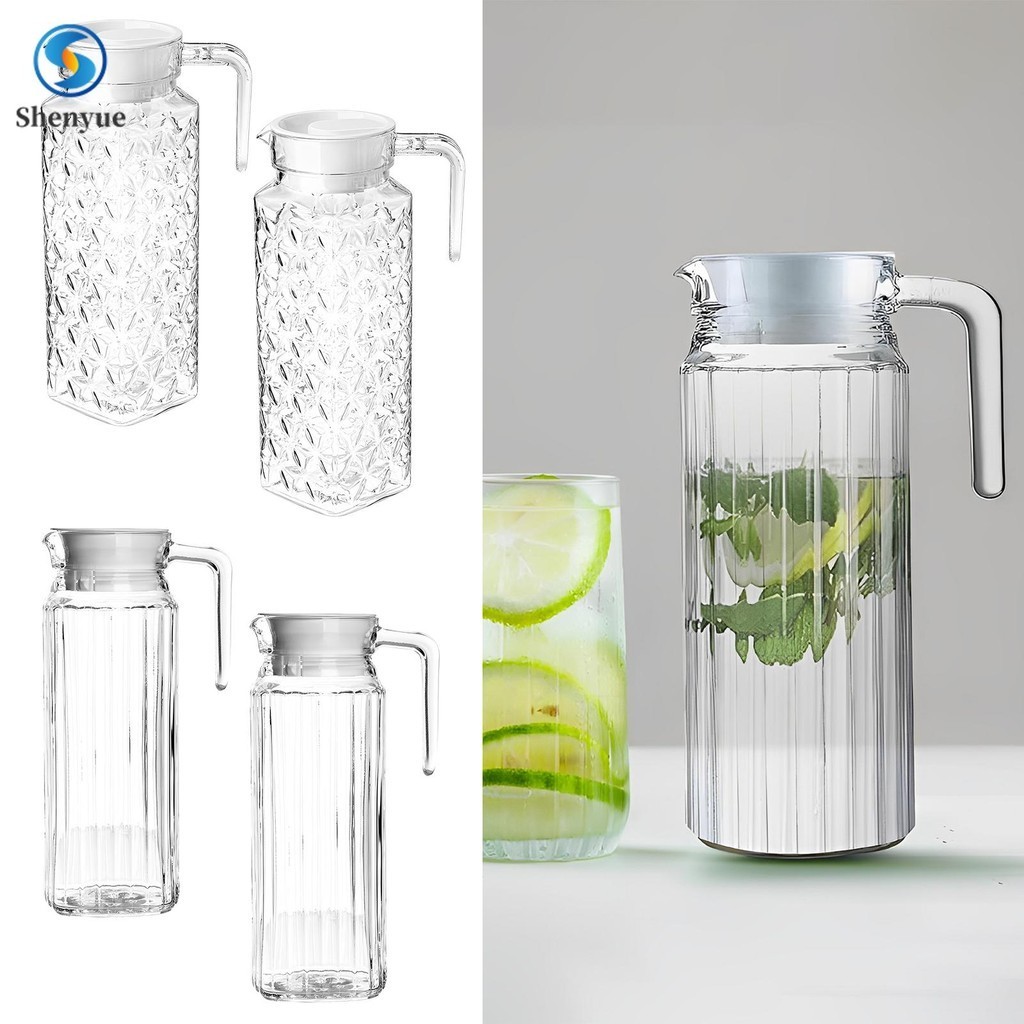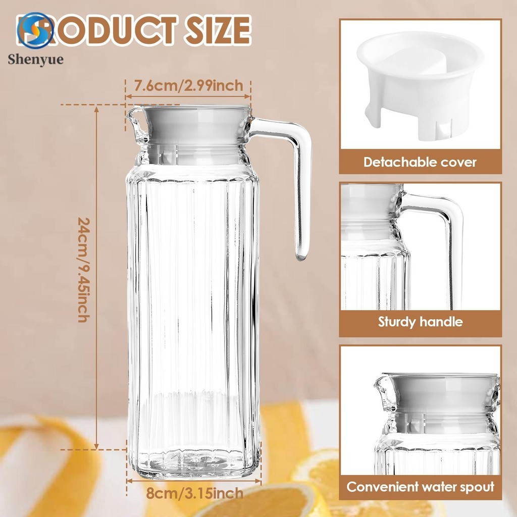 2 Pack Plastic Pitcher with Lid 1.1L Water Jar with Ribbed Design BPA-Free Water Pitcher Clear Plastic Water Pitcher with Vented Lid Fridge Pitcher for Hot Water Ice SHOPSBC1601
