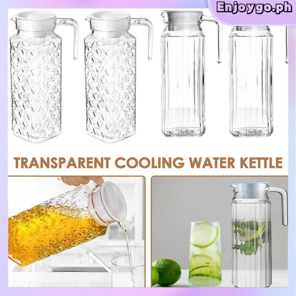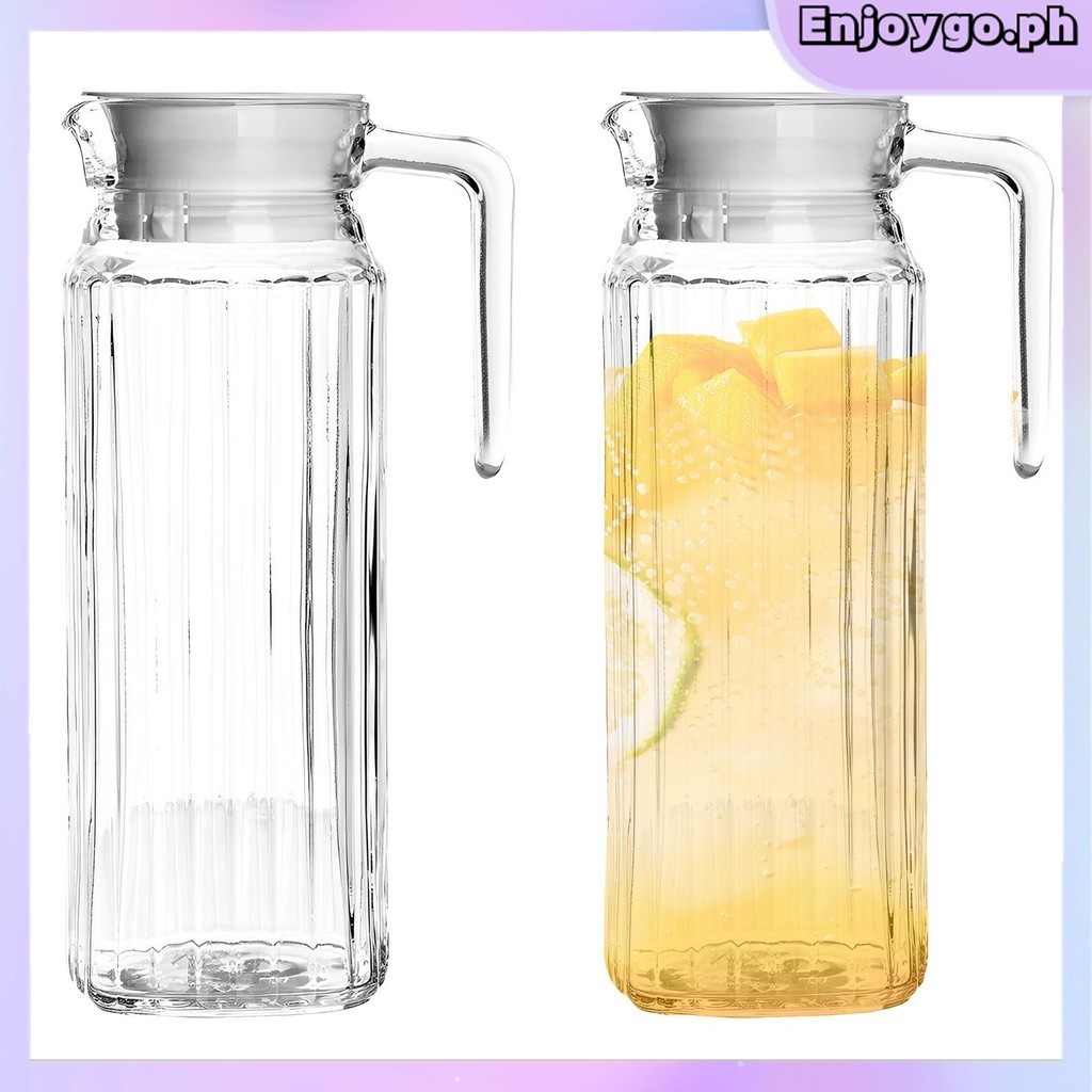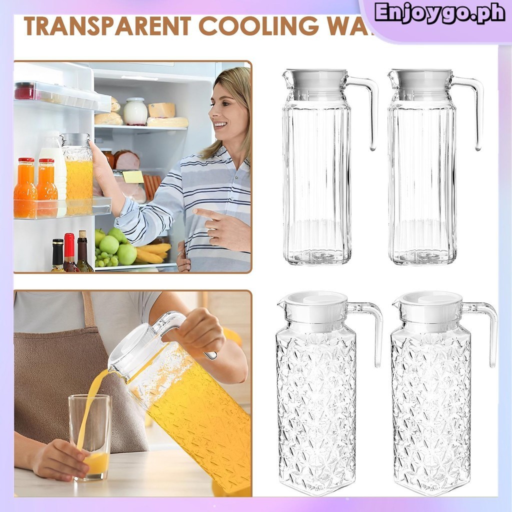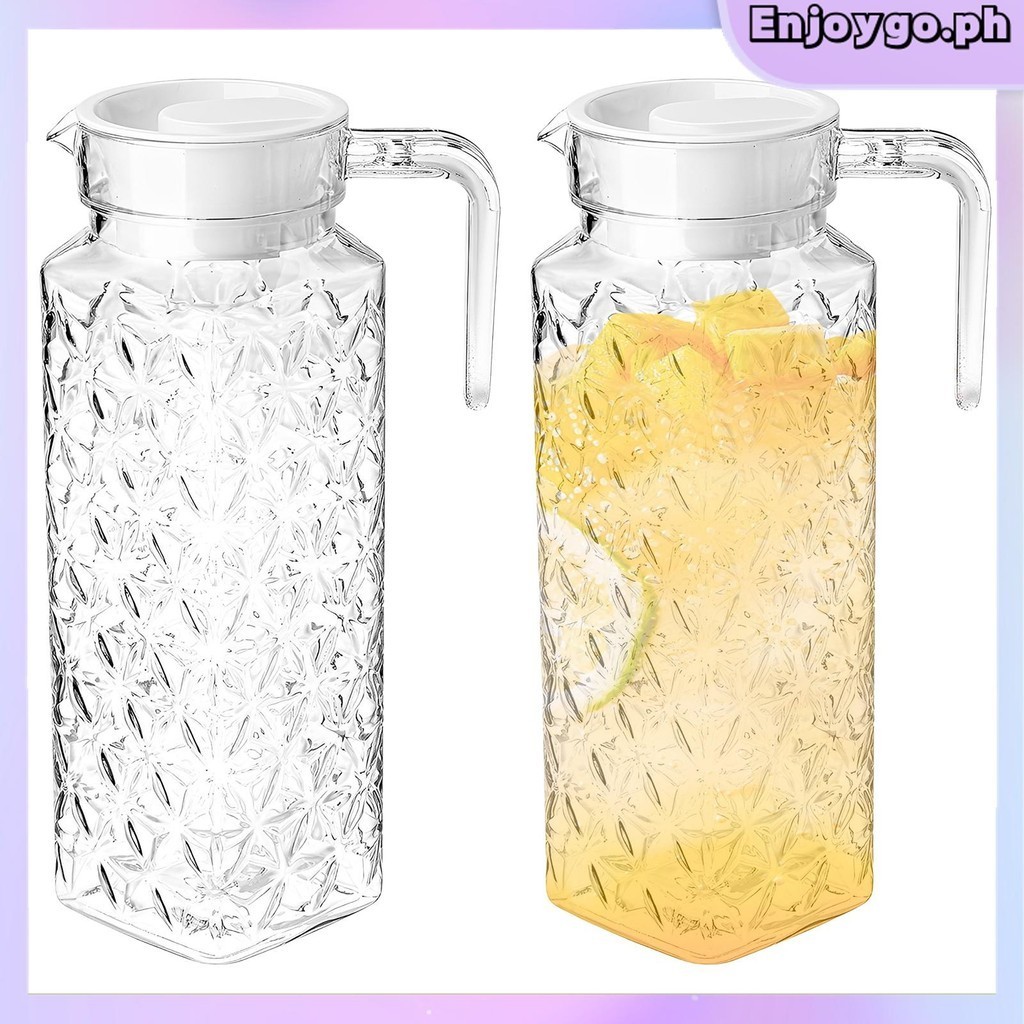 2 Pack Plastic Pitcher with Lid 1.1L Water Jar with Ribbed Design BPA-Free Water Pitcher Clear Plastic Water Pitcher with Vented Lid Fridge Pitcher for Hot Water Ice SHOPSKC7057