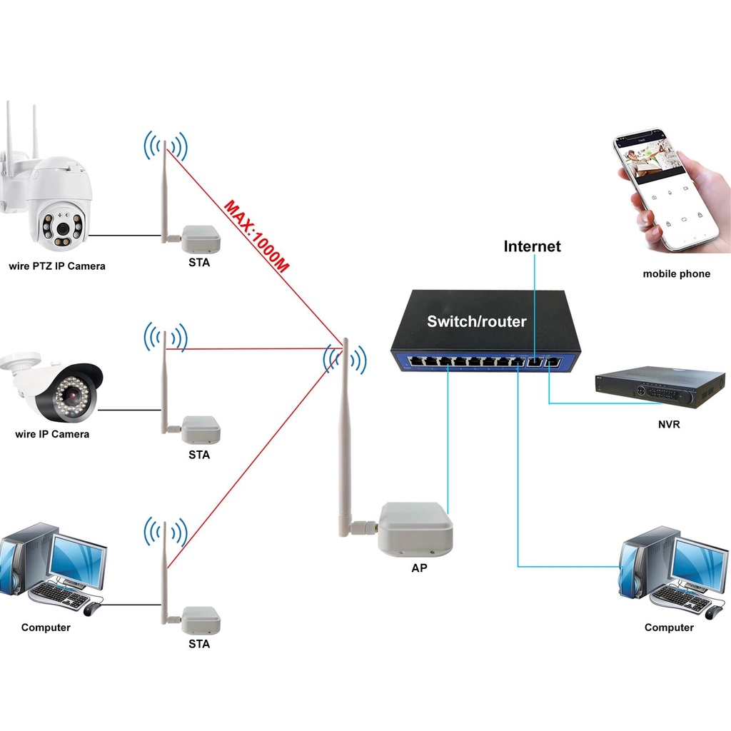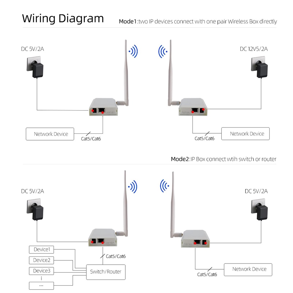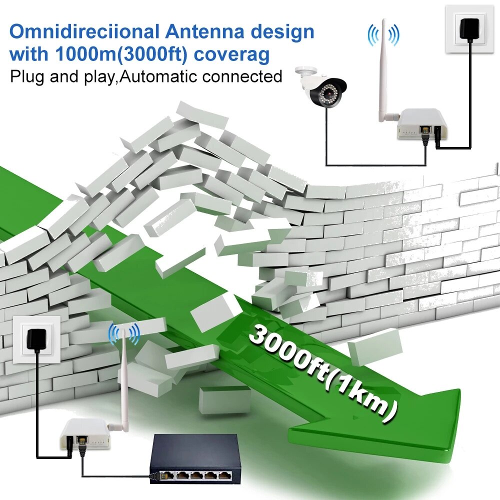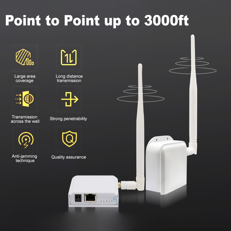 2-Pack Wireless Access Point with Ethernet Port Bridge Kit Outdoor Point to Point Connection Long-Range Upto 1 KM for IP Camera