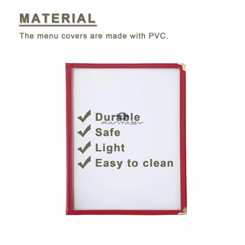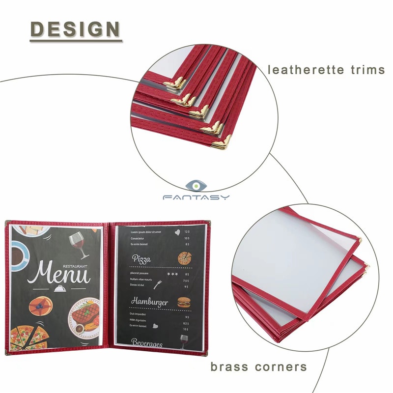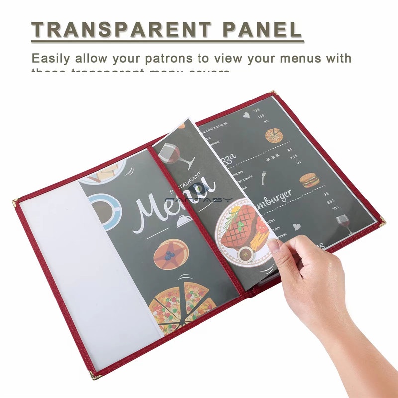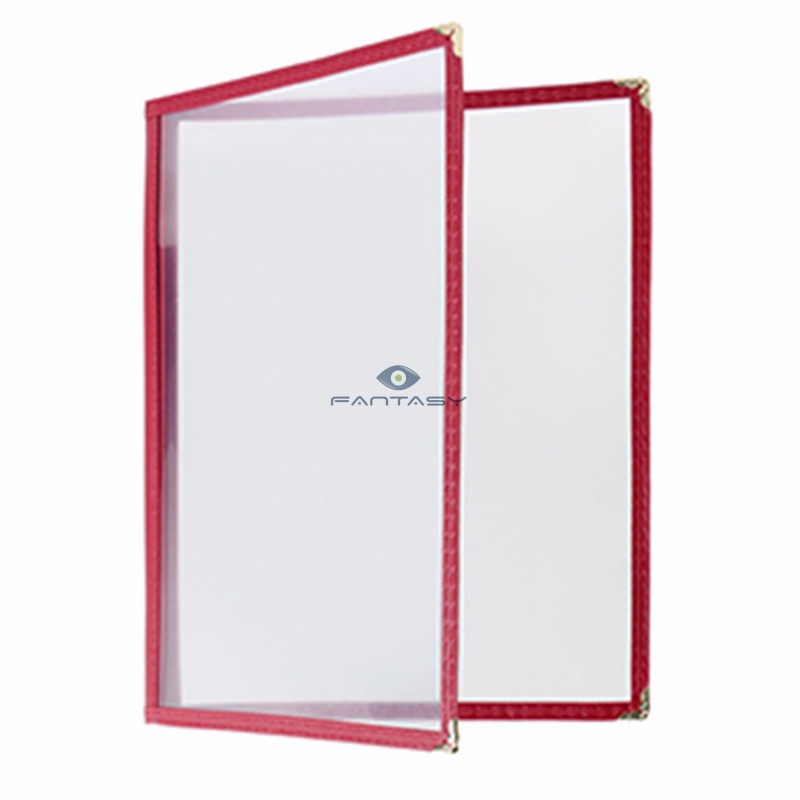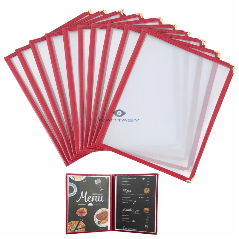 2 Pages 4 Faces A4 Transparent Menu Covers Restaurant Menu Folder Menu Book Price List Holder RED