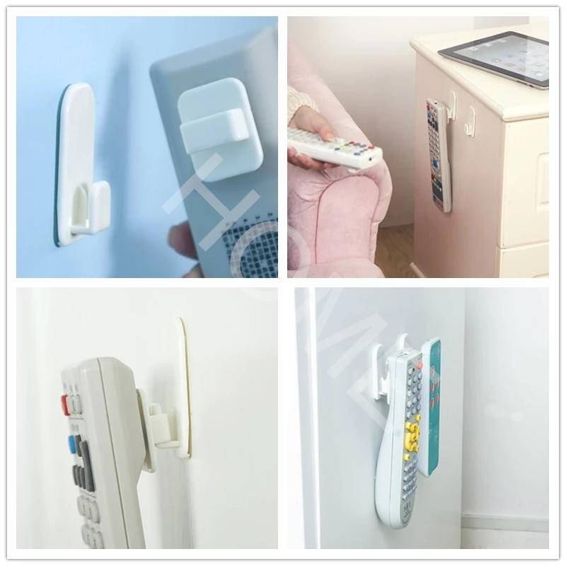 2 Pairs Sticky Hook Set For Air Conditioner TV Remote Control Strong Hanger Plastic Key Wall Racks Holder Home Organization
