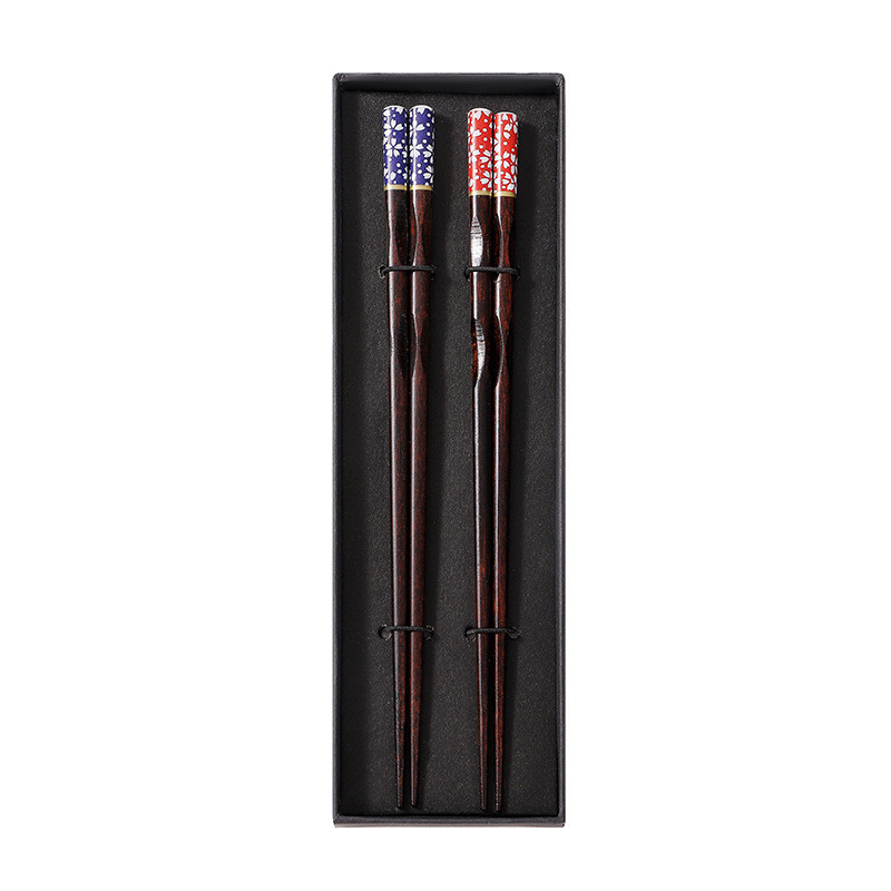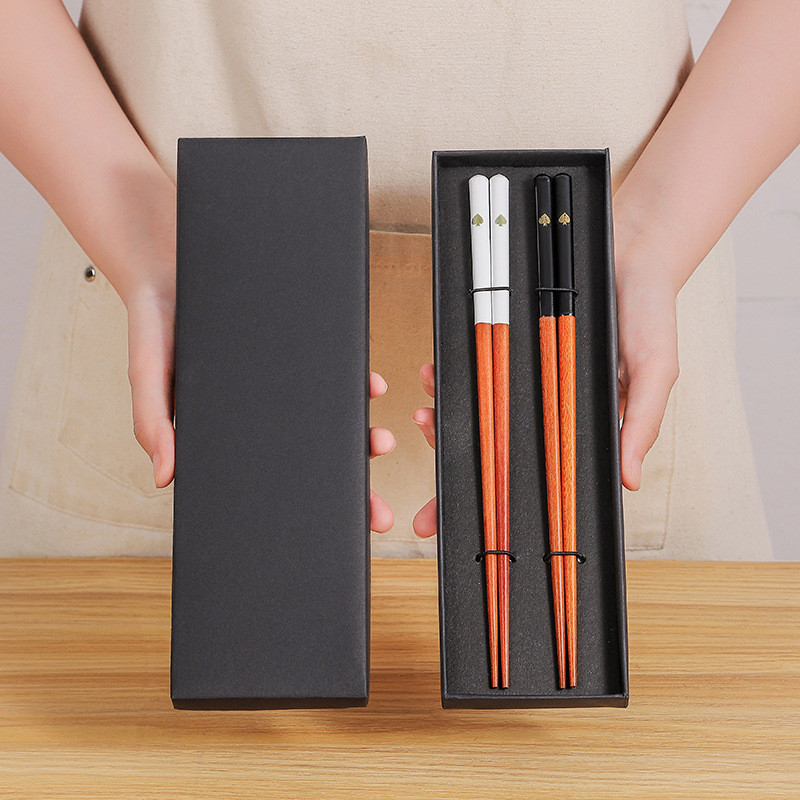 2 Pairs of Wooden Chopsticks Couple Chopstick Set Portable Tableware with Gift Box Souvenir Holiday Gifts
