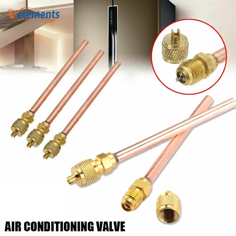 2 Pcs/ Kit Convenient Replaceable Refrigeration System Charging Valve - High Quality Copper Tube Air Conditioner Refrigerant Filling Valves