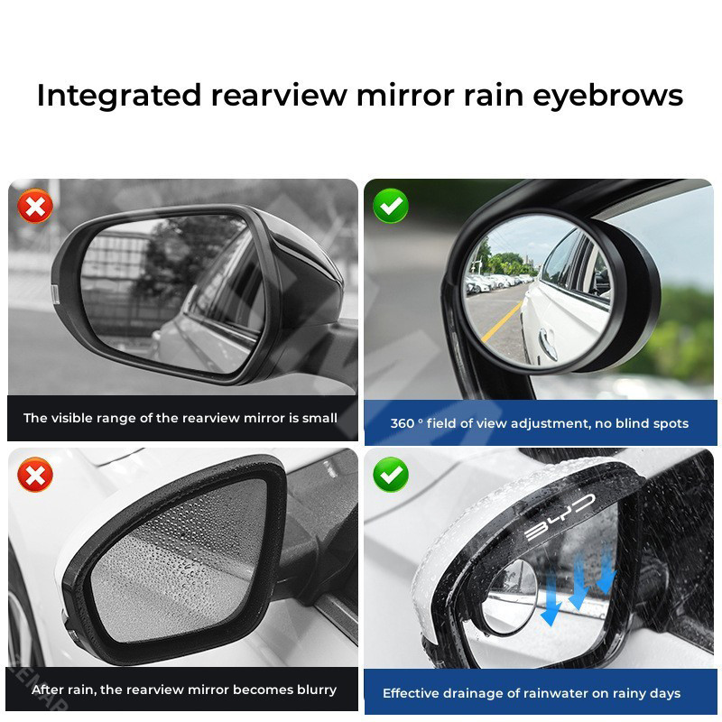 2 Pcs/Set BYD Car Rear View Mirror Rain Eyebrow Visor Blind Spot Rearview Mirror Rain Cover For Atto 3 Yuan plus Song Plus Dolphin Mini Seal U Han EV Accessories