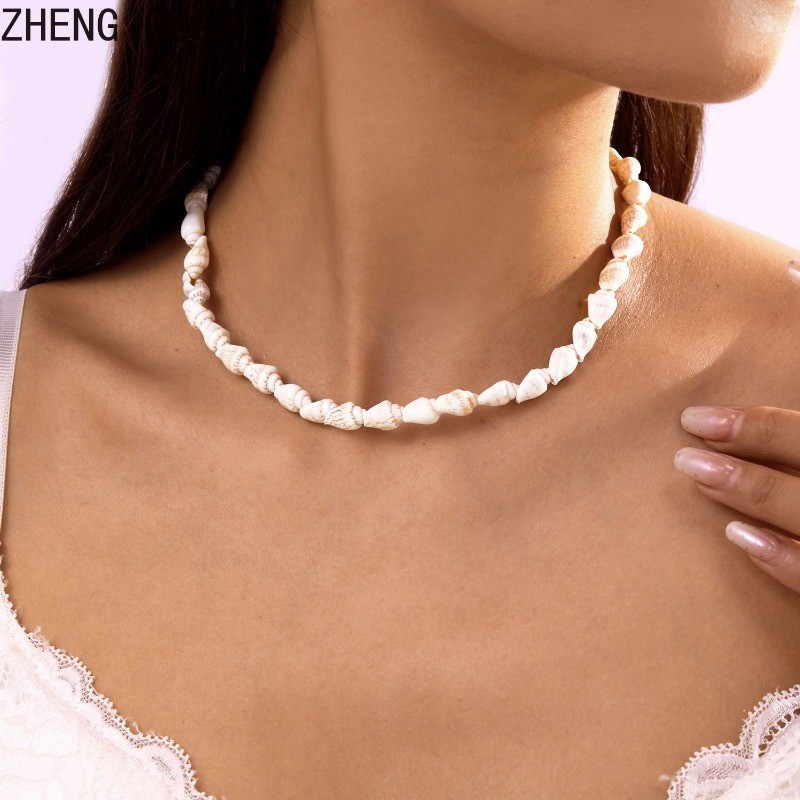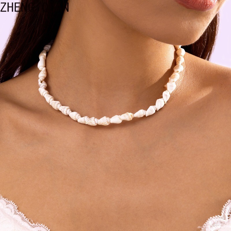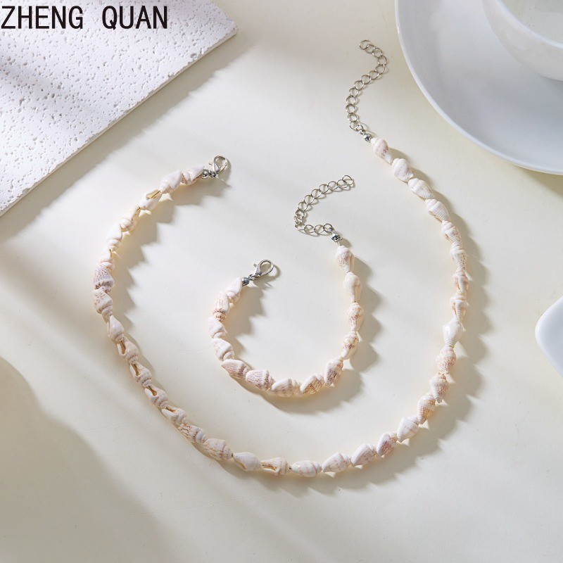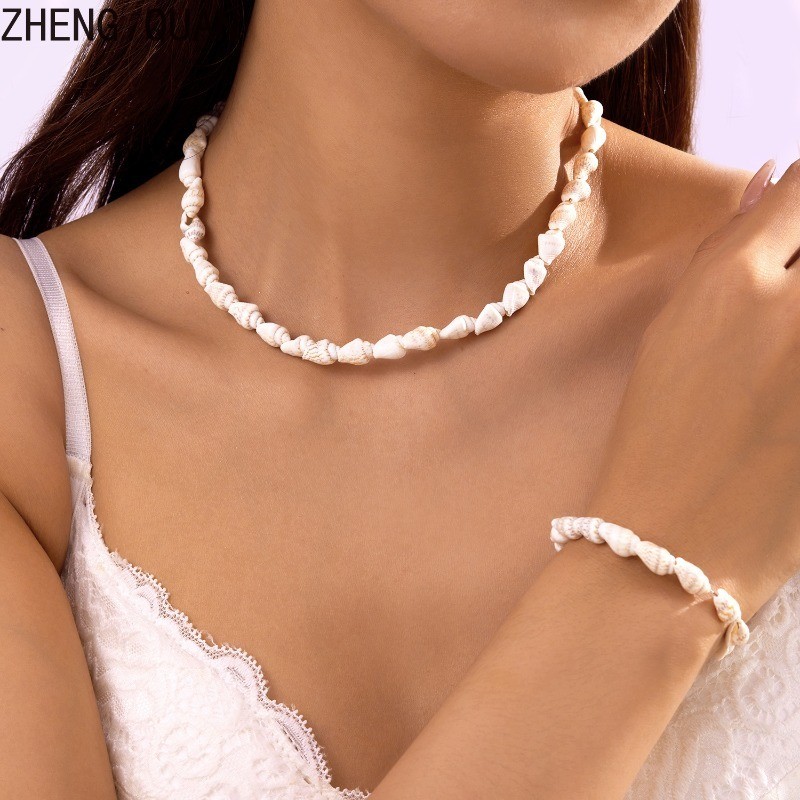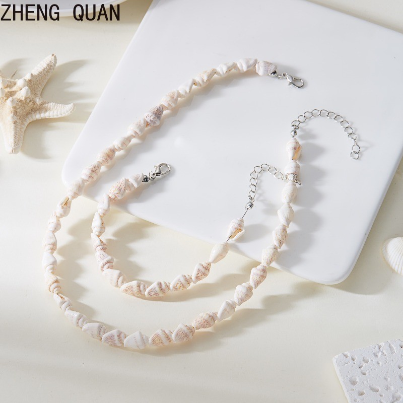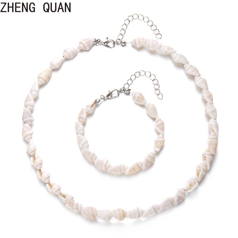 2 Piece Natural White Seashell Conch Necklace Bracelet Set Adjustable Boho Beach Jewelry Sets For Women Shell Gift Set Summer Ocean Accessories Holdiay