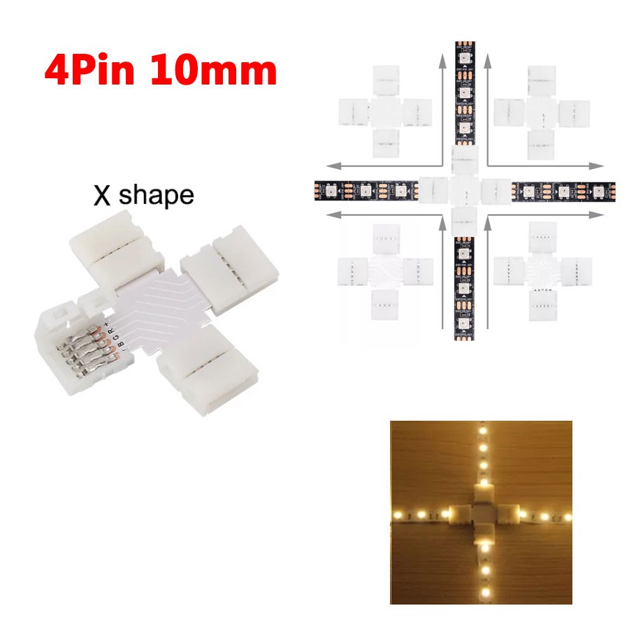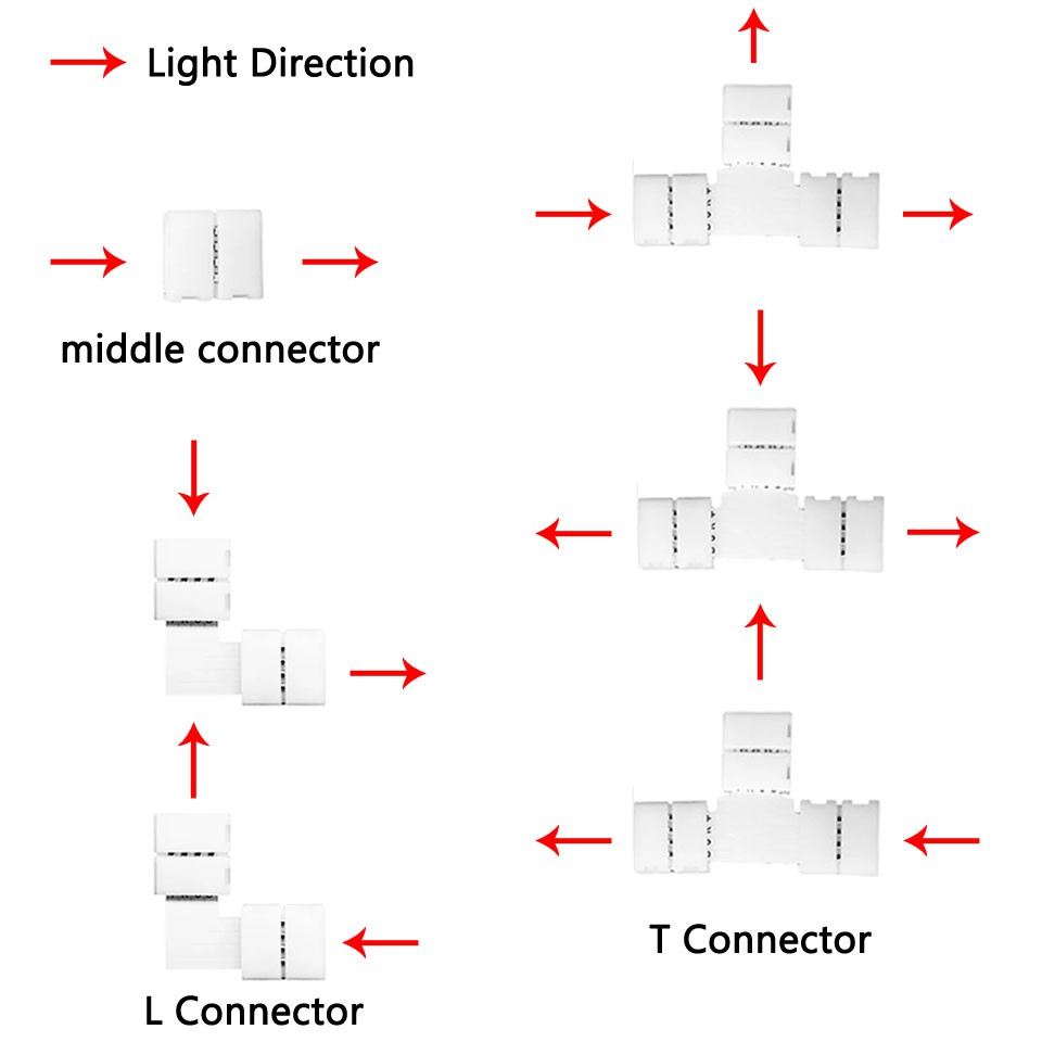 2 Pin 3 Pin 4 Pin 5 Pin 6 Pin LED Strip Connector 8MM, 10MM, 12MM T & L Shape For RGB SMD 5050 2835 LED Strip Light