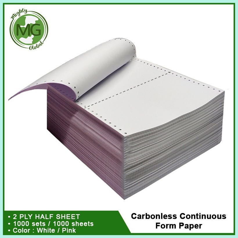 2 Ply Half Sheet 9.5 x 5.5" Carbonless Continuous Paper for Dot Matrix Printer by MIGHTY GLOBAL