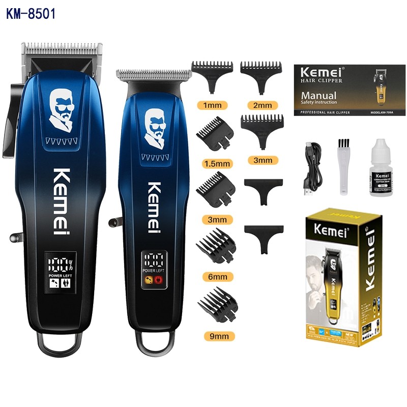 Kemei Professional Electric Hair Clippers Set Rechargeable Barber For Men LCD Display Adjustable Hair Cutter Machine KM-8501 For Salon Household