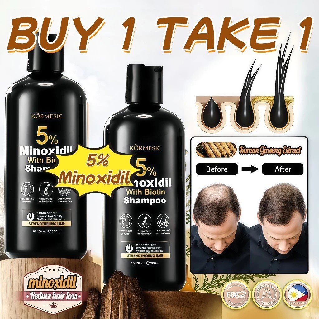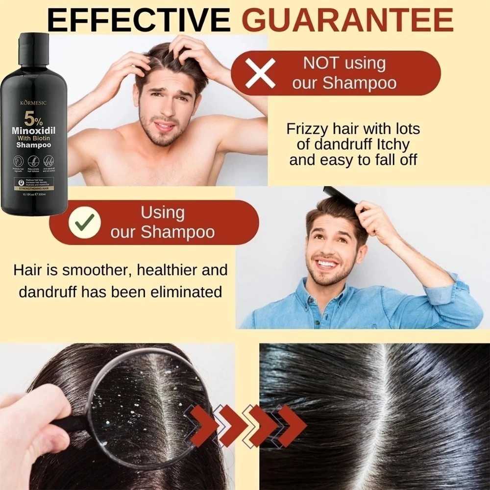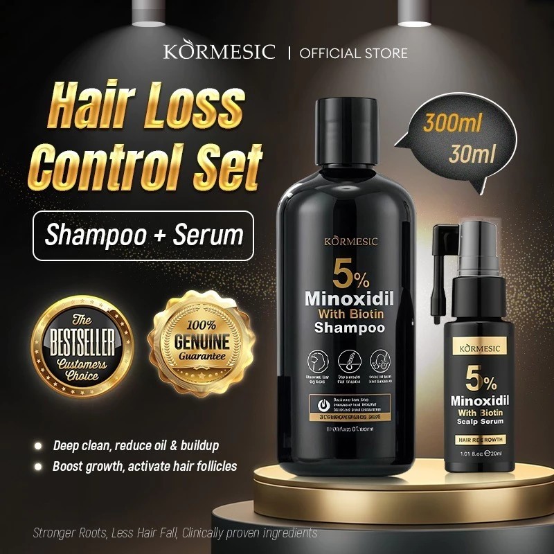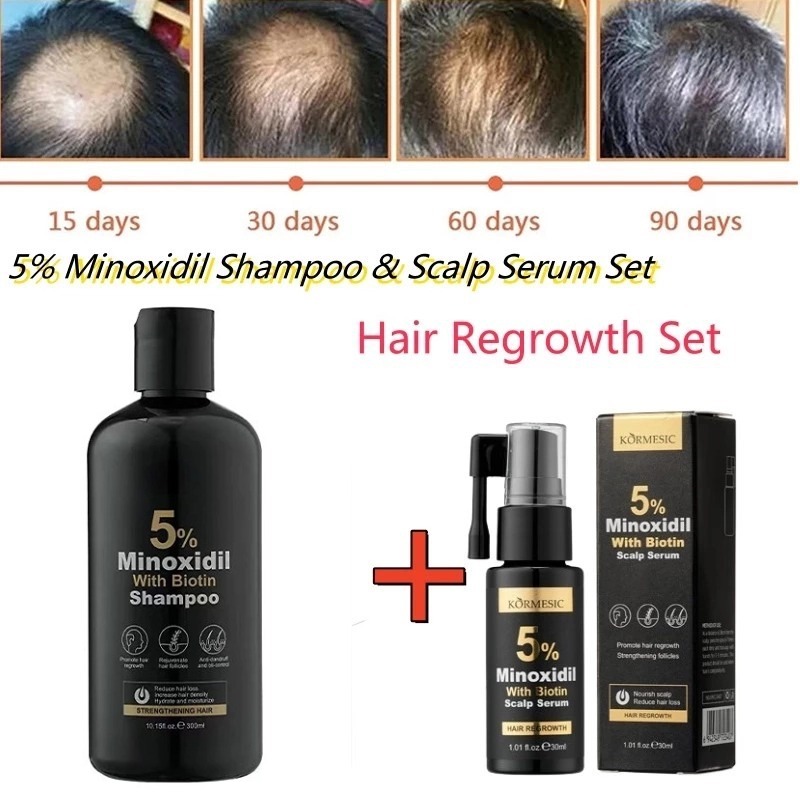 Minoxidil 5% Hair Grower with Biotin Shampoo And Serum 300ml for Hair Loss Treatment-KORMESIC