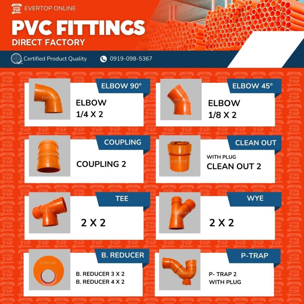 2" Sanitary Pipe PVC Fittings Orange Pipe Elbow, Coupling, Clean out, Tee, Wye, Bushing Reducer