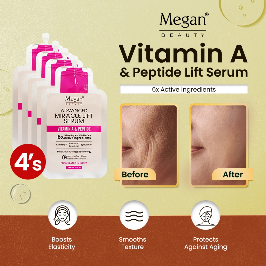 Megan Beauty Lift & White Serum10ml (Vitamin A, Peptide, Niacinamide & Panthenol) 4’s Bundle