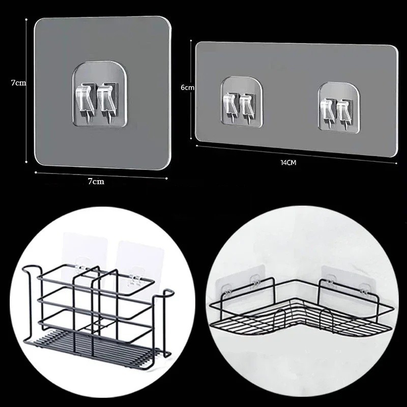 2 Sizes Transparent Shelf Hanging Rack Sticker/Self Adhesive Wall Storage Fixing Patch Hooks