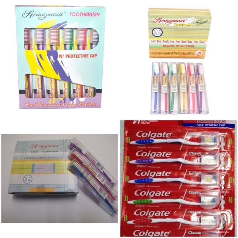 ORIGINAL Springmaid Toothbrush 8175,8154,8171,Colgate ClassicToothbrush with Cap , W/ TA12PCS) 1 BOX