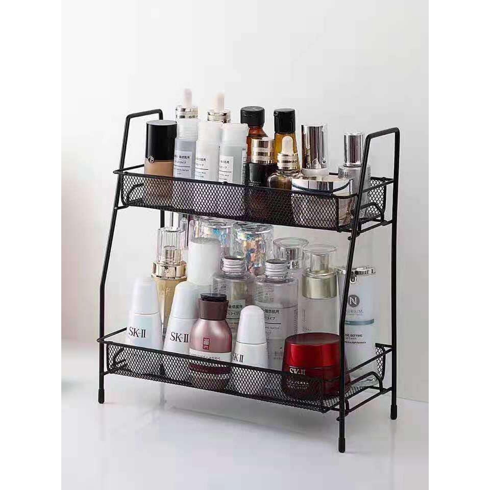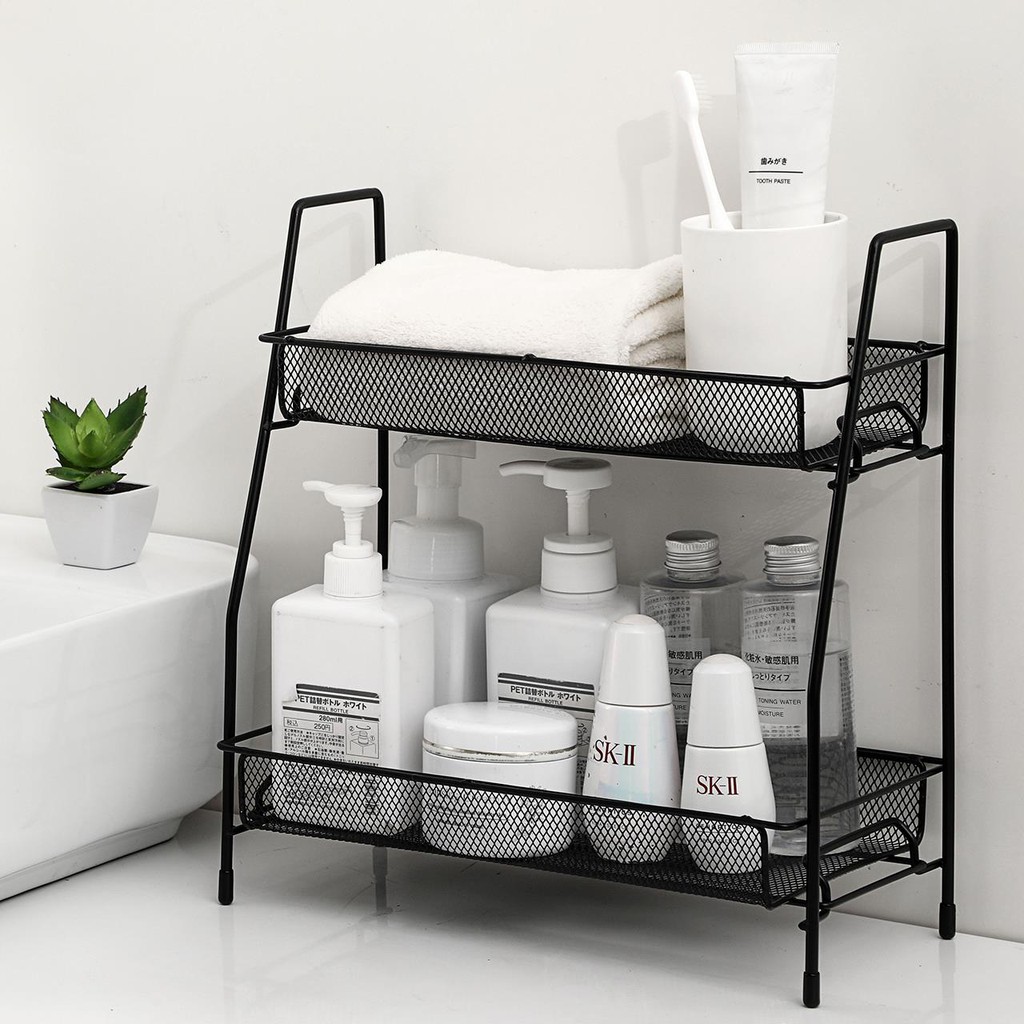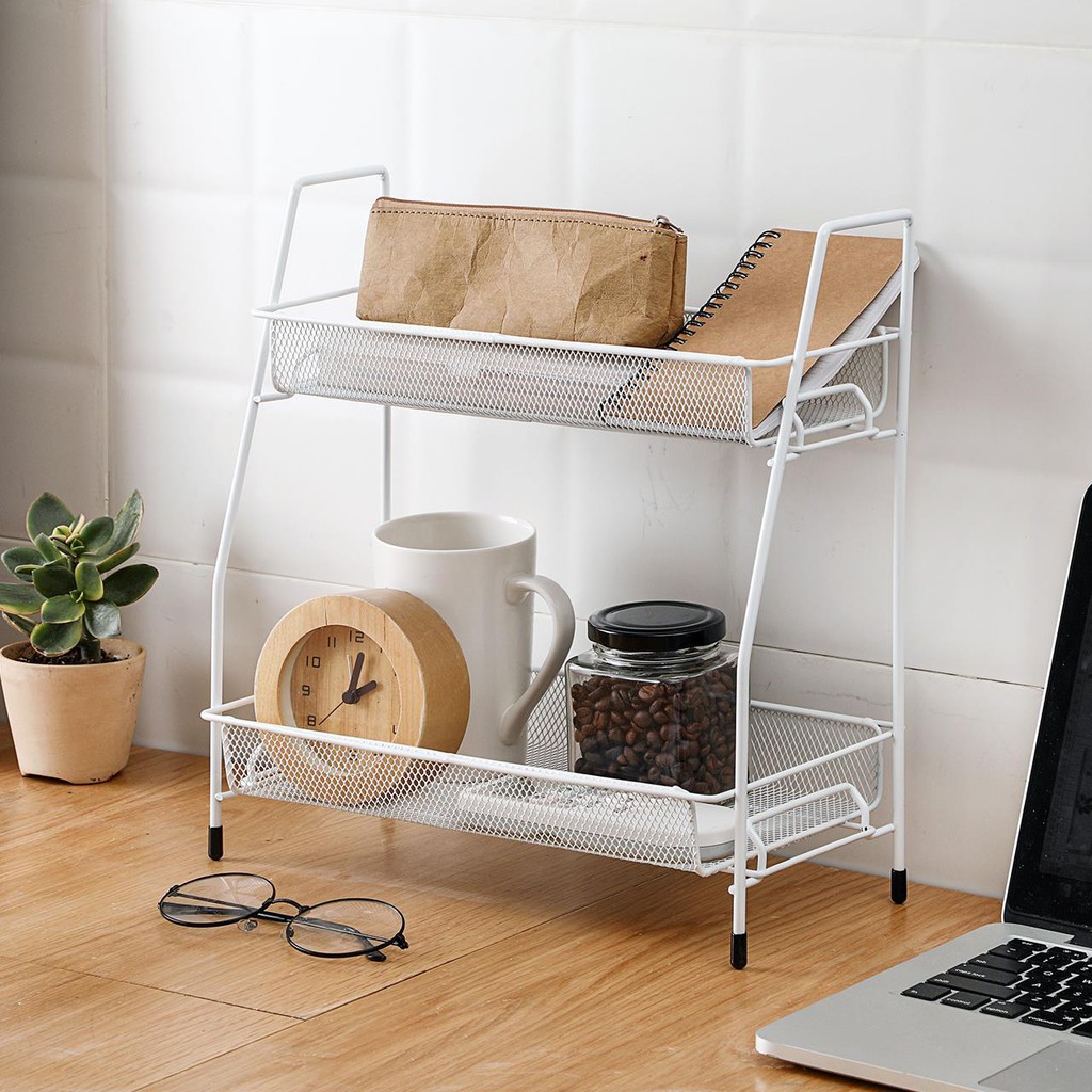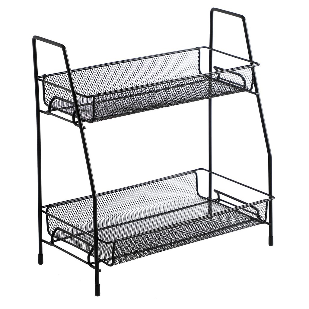 2 Tier Storage Organizer Standing Shelf with Mesh Basket
