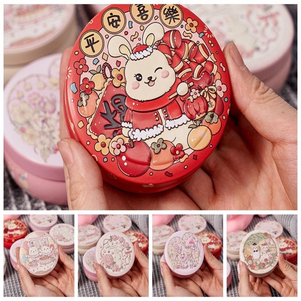 QINGO Tin Box, Three-dimensional Pattern Exquisite Candy Box, Baby 100 Days Gift Box Round Cartoon Tinplate Biscuit Storage Box Candy Packaging