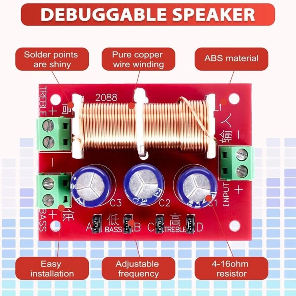 2 Way Crossover Filters Module 400W Audio Speaker Frequency Divider Full Range Treble Bass Welding