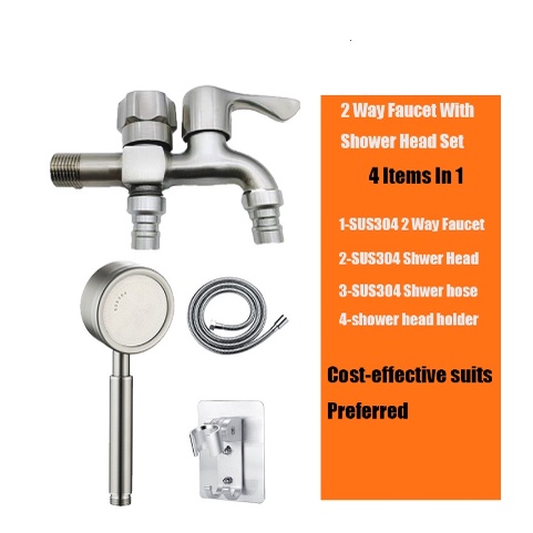 2 Way Faucet With Shower Head Set Stainless Steel Tow Taps For Shower