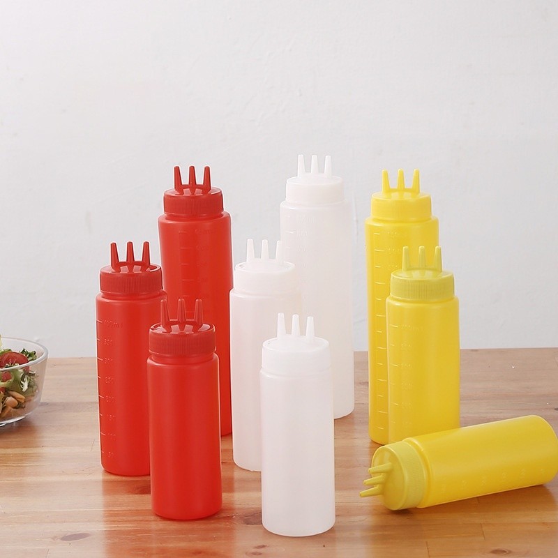 Ketchup Squeeze Bottle Plastic Condiment Squeeze Squirt Bottles 3 Hole Dispensing Bottles for BBQ