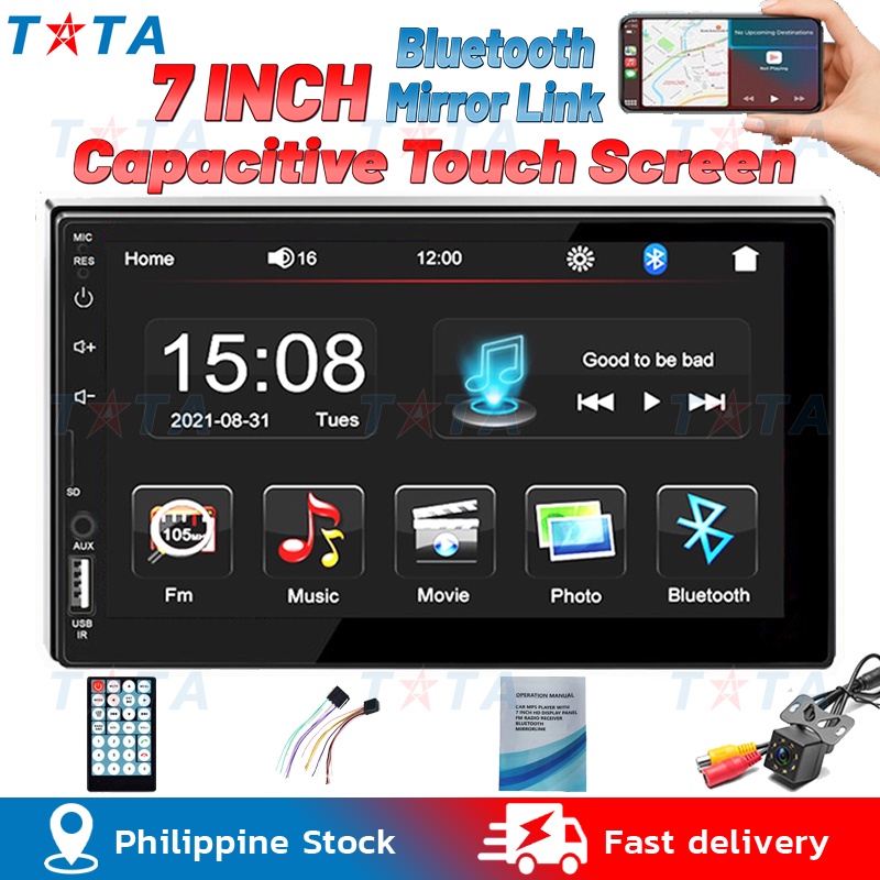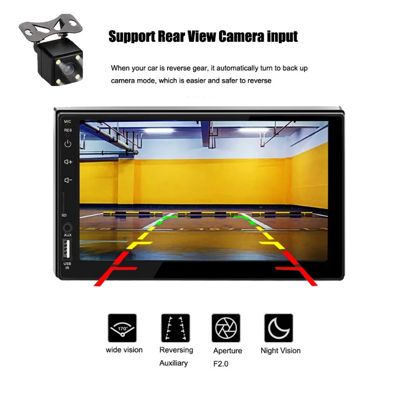 2 din 7" HD Touch Screen Car Stereo Car Multimedia Radio Player MP5 MP3 BT USB TF FM Camera 7023