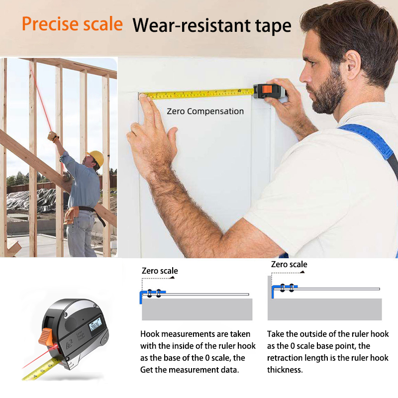 2 in 1 40M Laser Measuring Tape Digital Distance Meter 5M Tape Measure Handheld Range Finder Tool