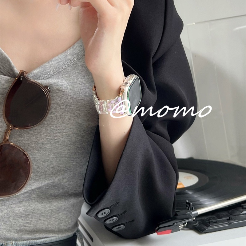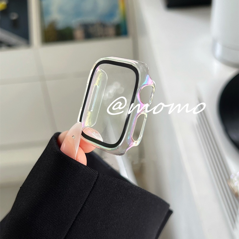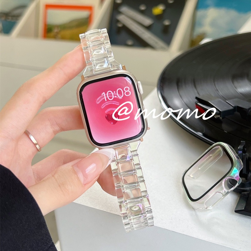 2-in-1 Laser colorful Apple Watch Case and Strap for Apple Watch Series 7 6 5 4 3 2 1 41mm 45mm 44mm 40mm Glacier Jelly Sports Apple Watch Band Bracelet Plastic iWatch Strap