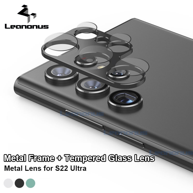 2 in 1 Lens Protector + Ring for Samsung Galaxy S22 Ultra Camera Tempered Glass Len Film + Metal Ring Cover Guard