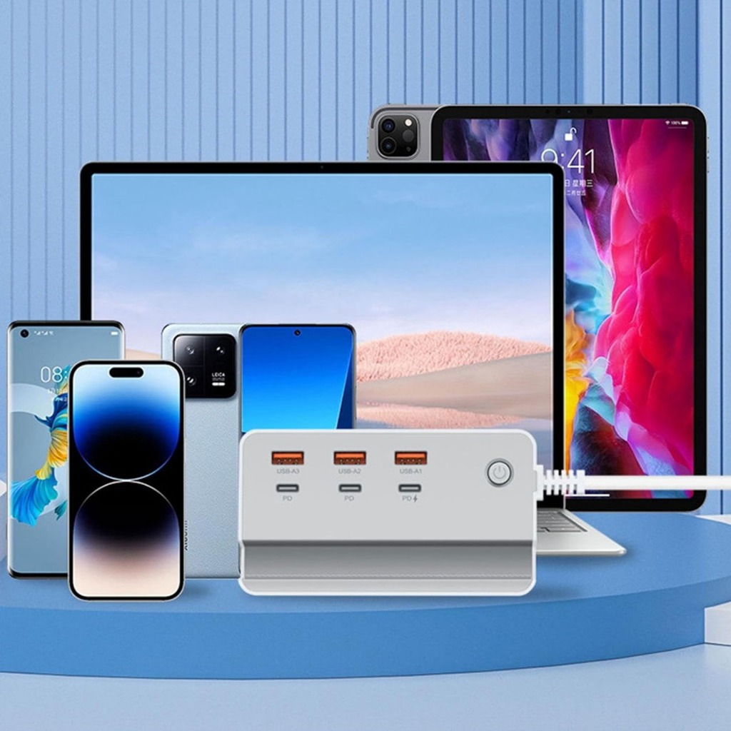 2 in 1 Multifunctional Desktop Power Strip with 3 USB+3 Type C Ports 35W Fast Charging Smart Chip