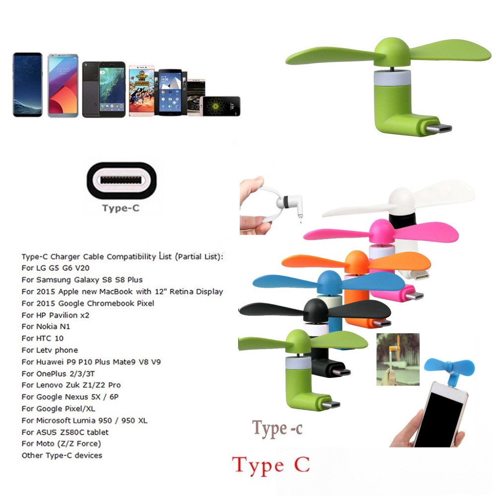2 in 1 Portable Mini Mobile Phone Fan For Type -C