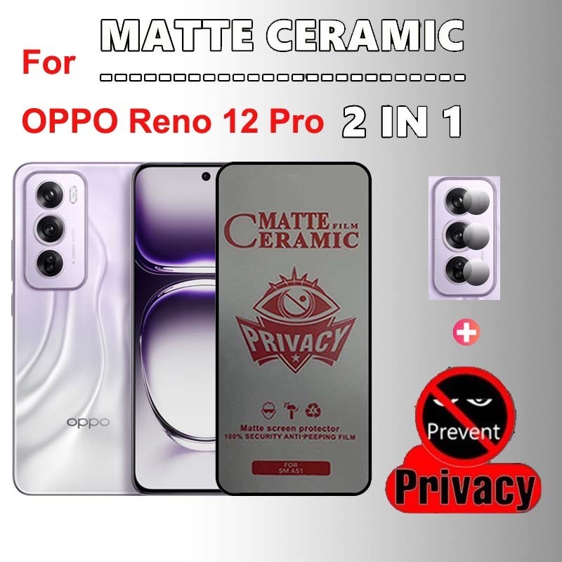 2 in 1 Privacy Screen Protector for OPPO Reno 12 Pro Anti Spy Soft Ceramic Matte Screen Protector for OPPO Reno 12 Pro 11 10 8T Pro Plus 5G Camera Lens Protector Glass Film