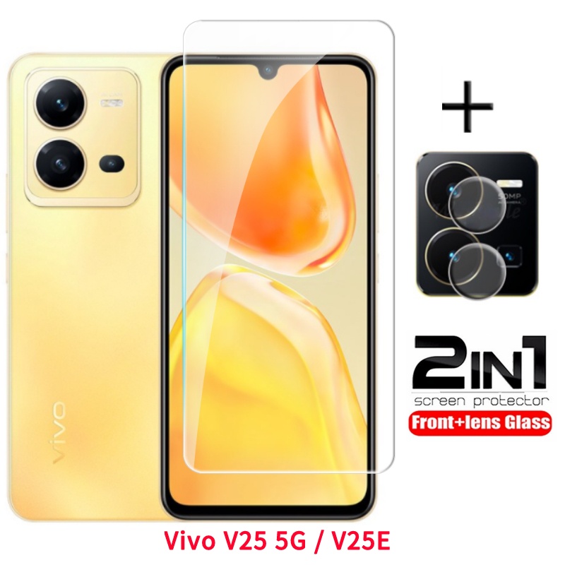 2 in 1 Screen Protector For Vivo V25 5G Y02S Y35 Y30 Y77 Y75 V25E V 25 5G Full Cover Tempered Glass Front Film Back Lens