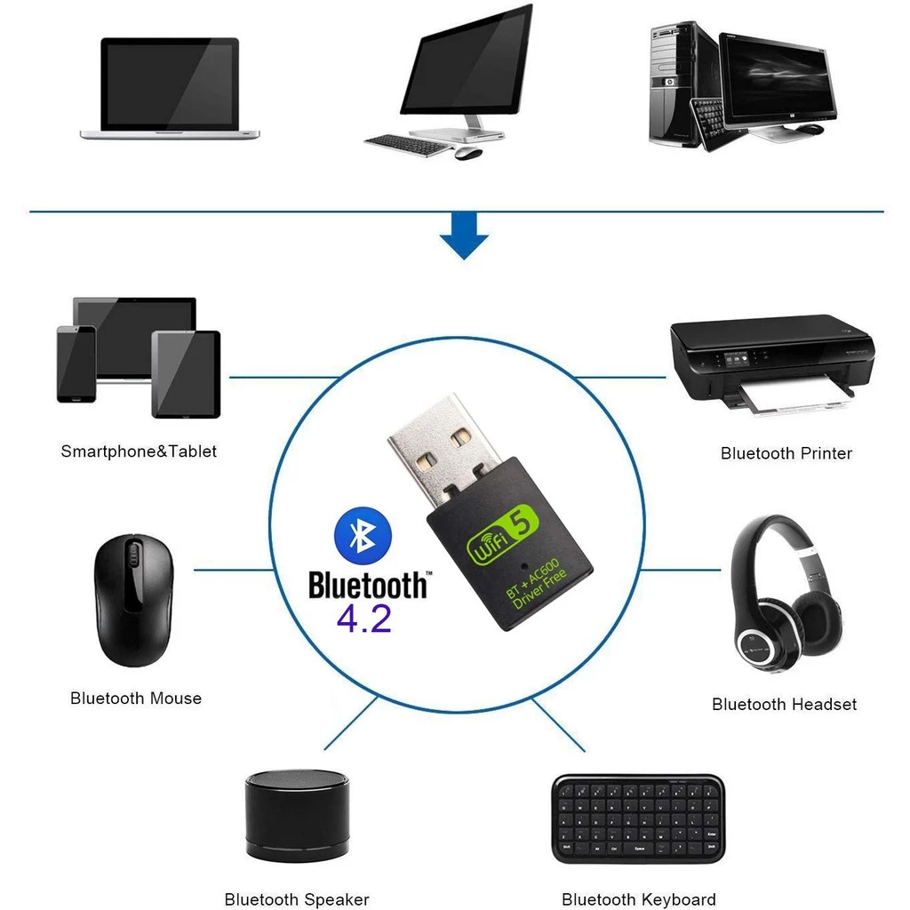 2 in 1 USB WiFi 5 Bluetooth Adapter 600Mbps Dual Band 2.4G 5GHz Network Wireless Wlan Receiver