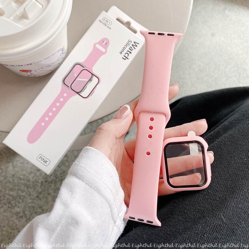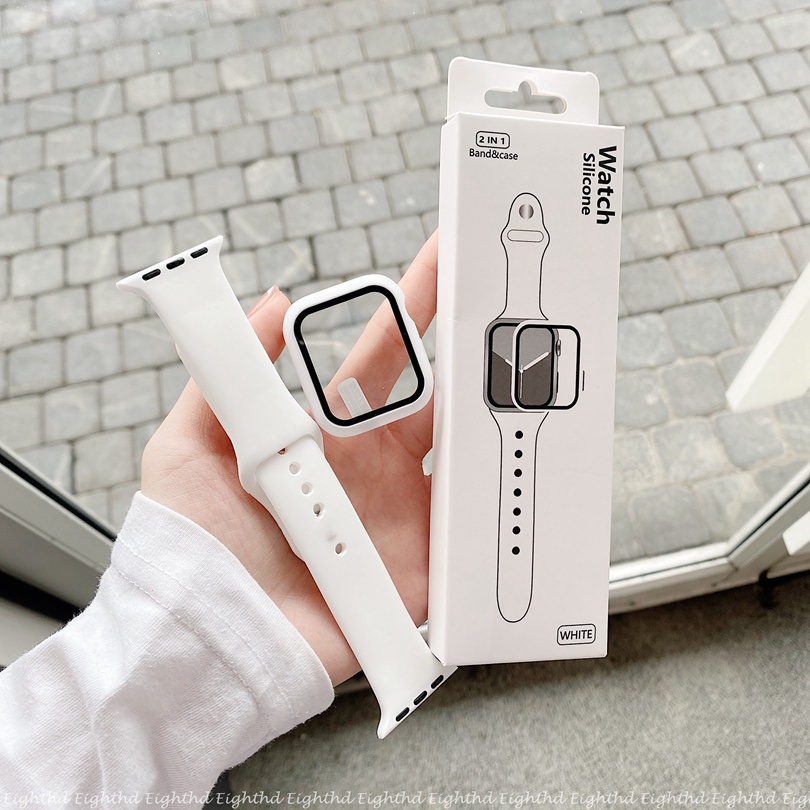 2 in 1 Watch Case + Strap For Smart Watch Series 8 7 6 SE 5 4 3 2 1 41mm 45mm 44mm 40mm 42mm 38mm Protective Shell Smart Watch Band Full Protection Bumper Accessories Wristband